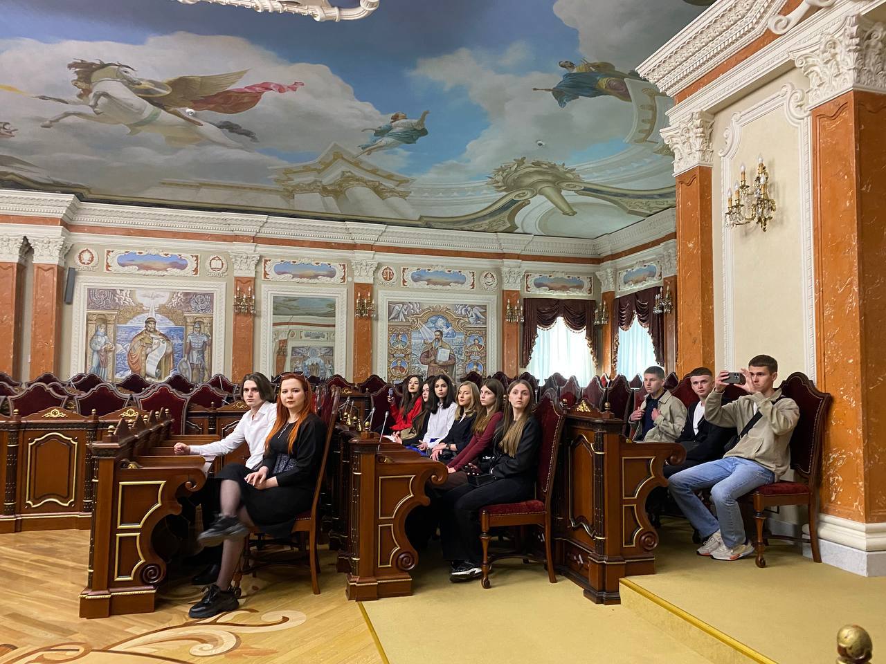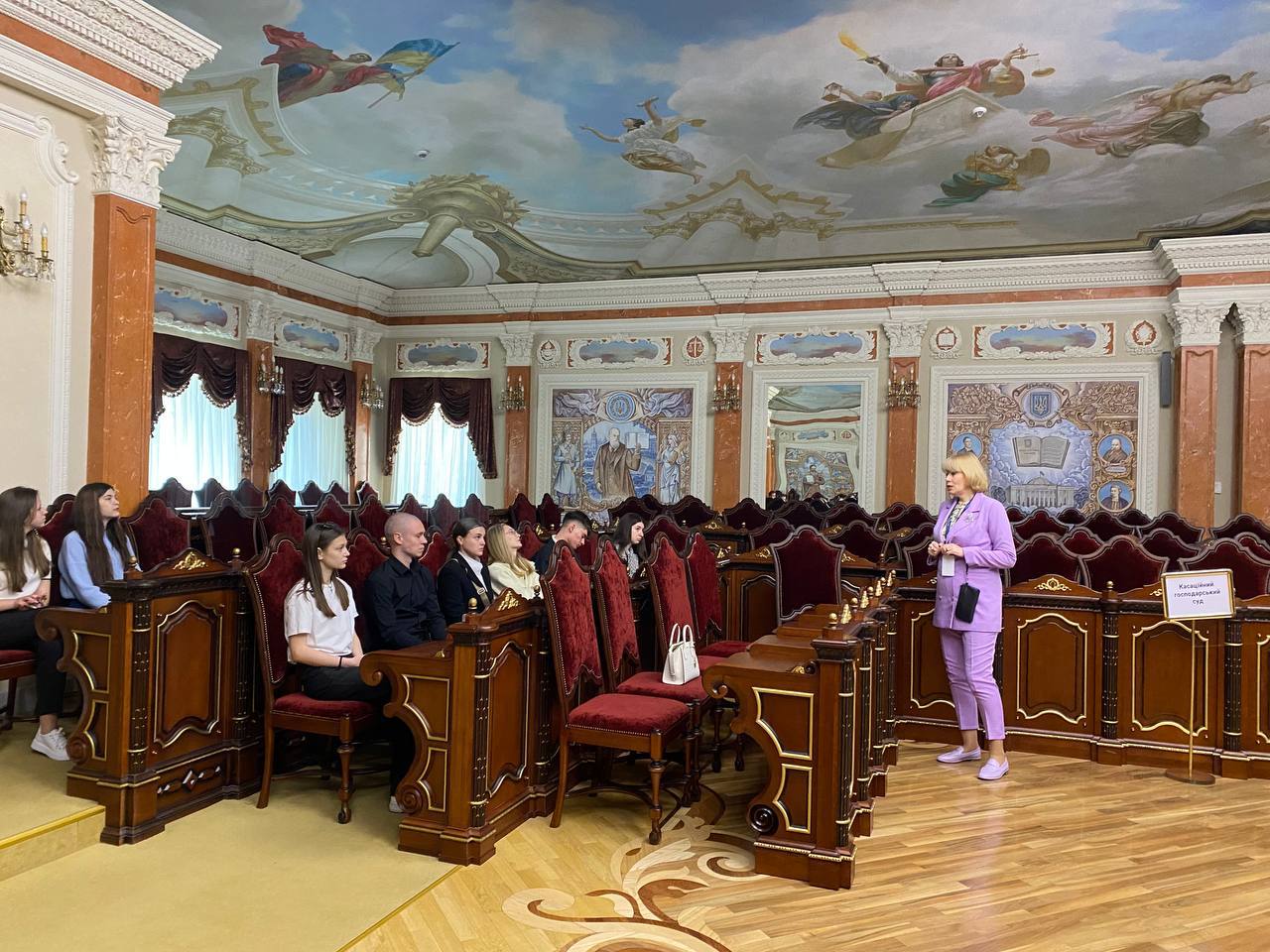 Під час екскурсії учасники змогли відчути атмосферу відповідальності, яка панує під час засідань Великої Палати Верховного Суду, розташованої у Кловському палаці. Студенти дізналися про процедуру розгляду справ, розташування учасників у залі та почули цікаві історичні факти про сам палац і його символіку.
