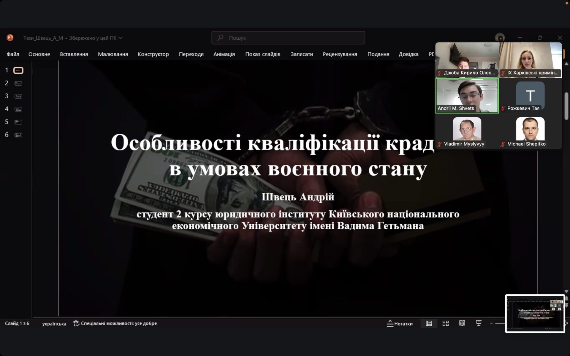 Навіть в умовах повномасштабної війни Національний юридичний університет імені Ярослава Мудрого продовжує виконувати свою освітню та наукову місію – готувати не лише правозастосувачів, а й майбутніх науковців-правників. Глибока вдячність Збройним Силам України за можливість творити і навчати з поглядом у майбутнє.