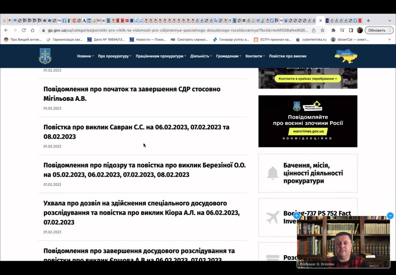 1 лютого 2023 року на Факультеті слідчої та детективної діяльності відбувся черговий вебінар. Лекцію на тему: “Заочне кримінальне провадження” прочитав член Комісії з питань правової реформи при Президентові України, член науково-консультативних рад Конституційного Суду України та Верховного Суду, доктор юридичних наук, професор, заслужений юрист України, адвокат Олександр ДРОЗДОВ, який також є викладачем кафедри кримінального процесу нашого Університету.