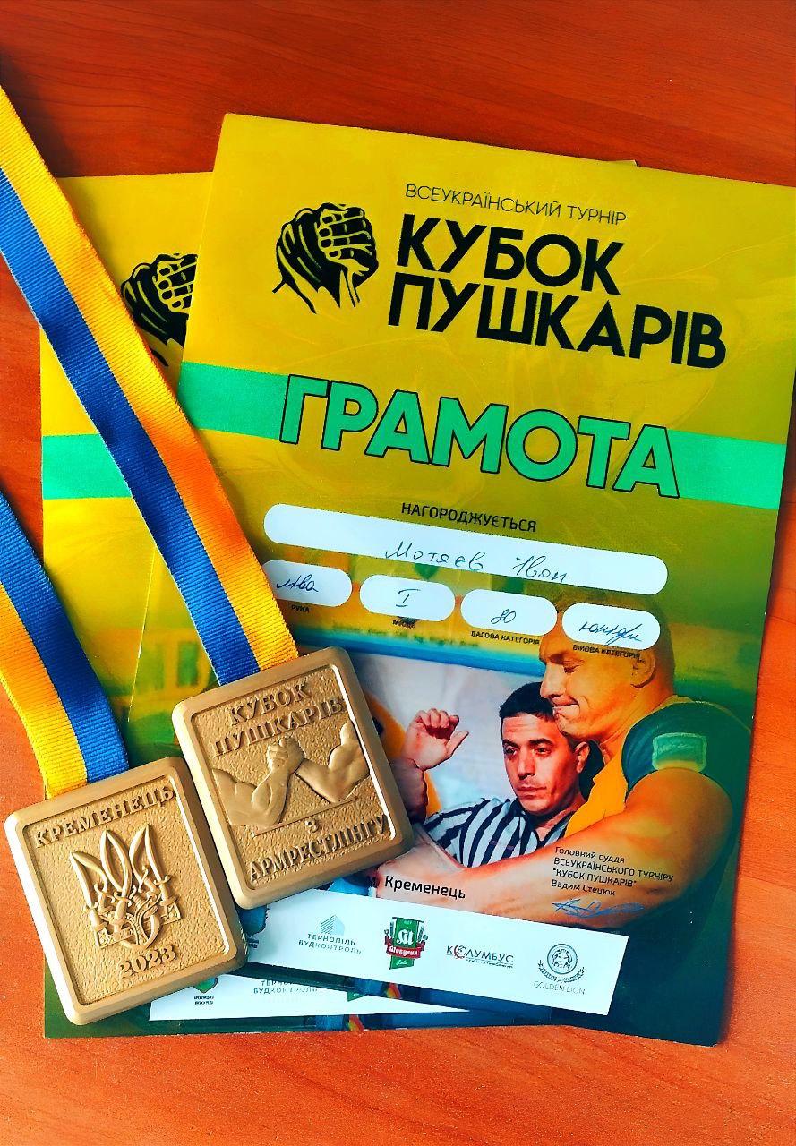 Студент 2 курсу бакалаврату факультету прокуратури Національного юридичного університету імені Ярослава Мудрого Іван Мотаєв зайняв перше місце на ліву та праву руку у ваговій категорії до 80 кг. серед юніорів (до 18 років включно) у Всеукраїнський турнір з армрестлінгу – Кубок Пушкарів.