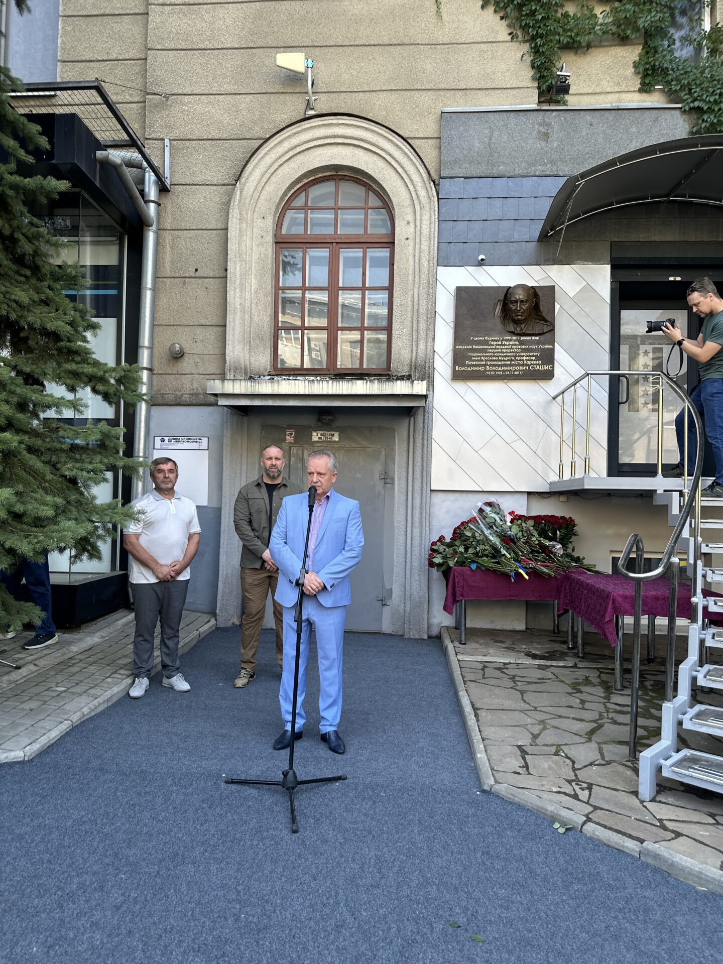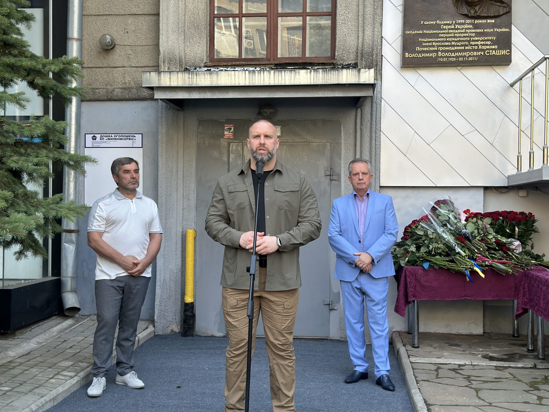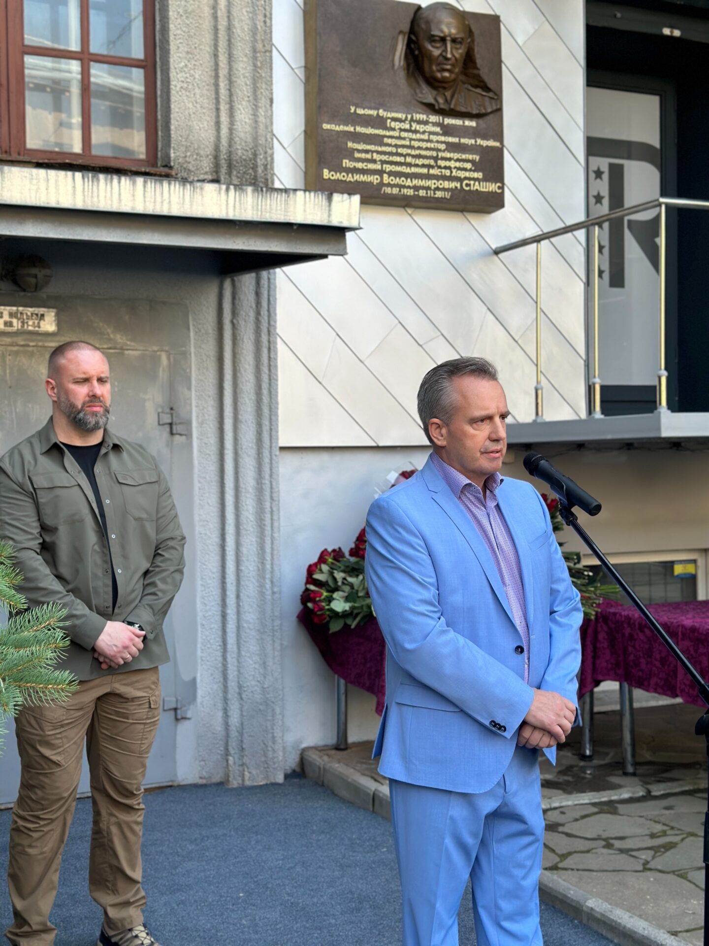Сьогодні за ініціативи колективу Національного юридичного університету імені Ярослава Мудрого та підтримки Харківської міської ради на фасаді будинку по вулиці Сумська, 126, де проживав Володимир Володимирович Сташис було відкрито меморіальну дошку.