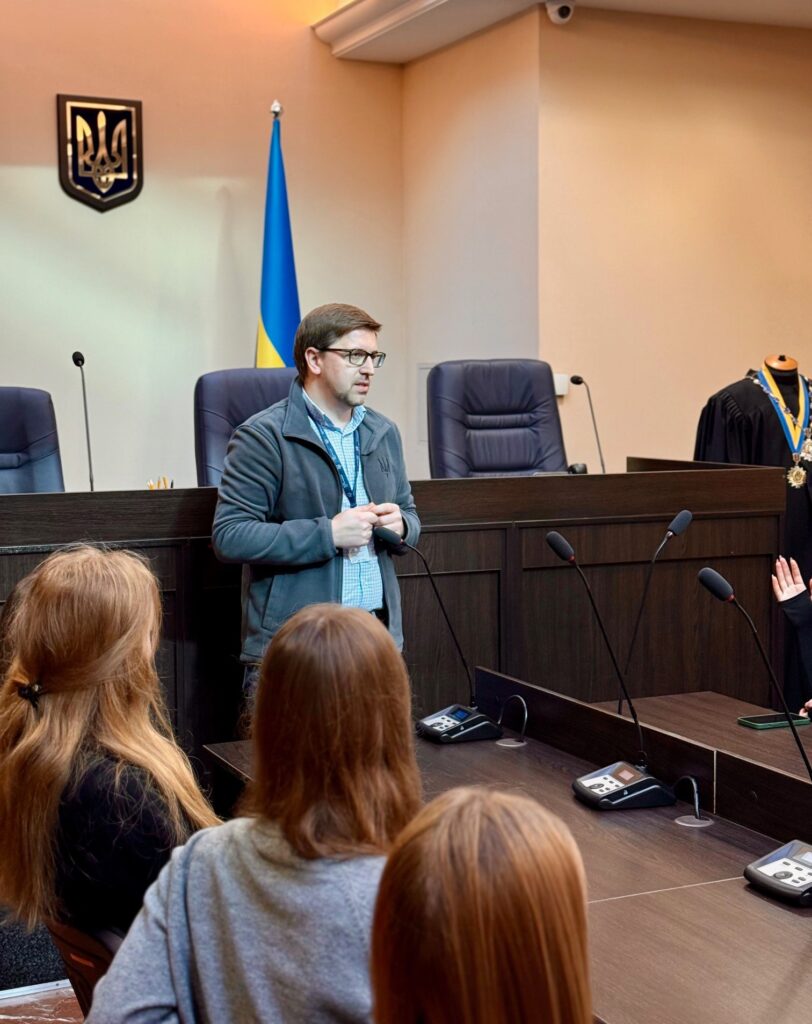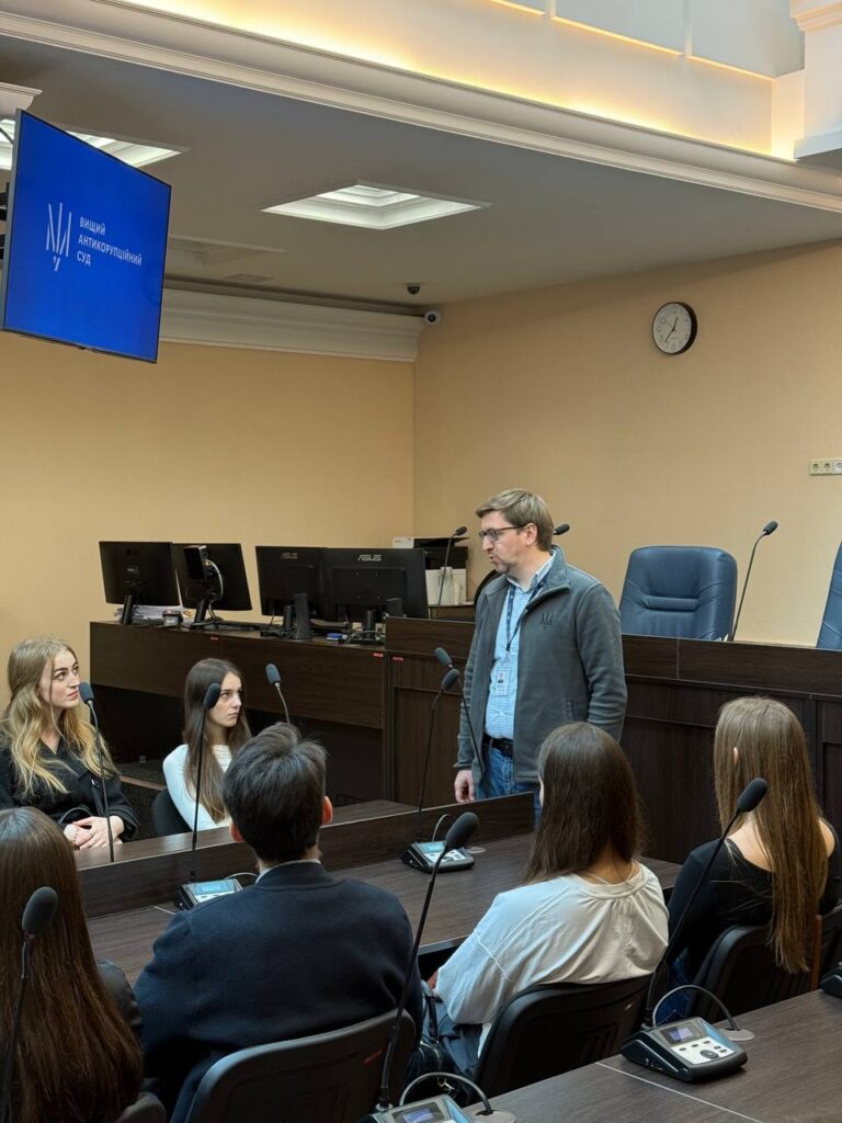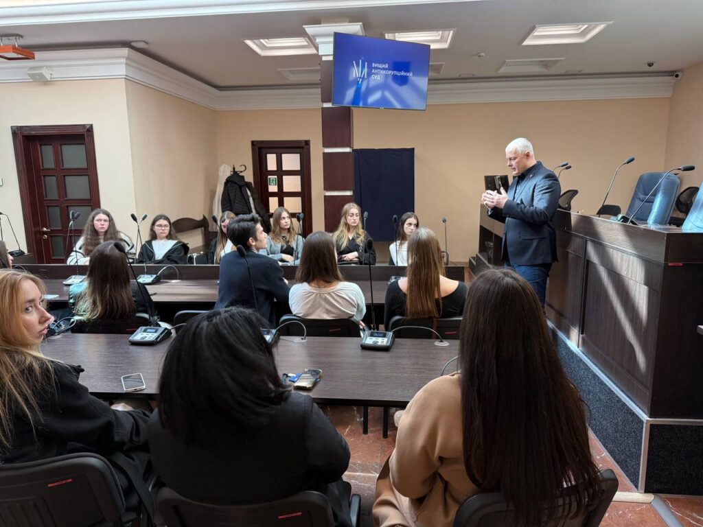 Зустріч розпочалася зі знайомства студентів із керівником апарату Вищого антикорупційного суду Богданом Крикливенком. Він детально розповів про специфіку функціонування спеціалізованого суду, його структуру, особливості розгляду кримінальних проваджень у справах, пов’язаних із корупцією, а також відповів на численні запитання майбутніх юристів.