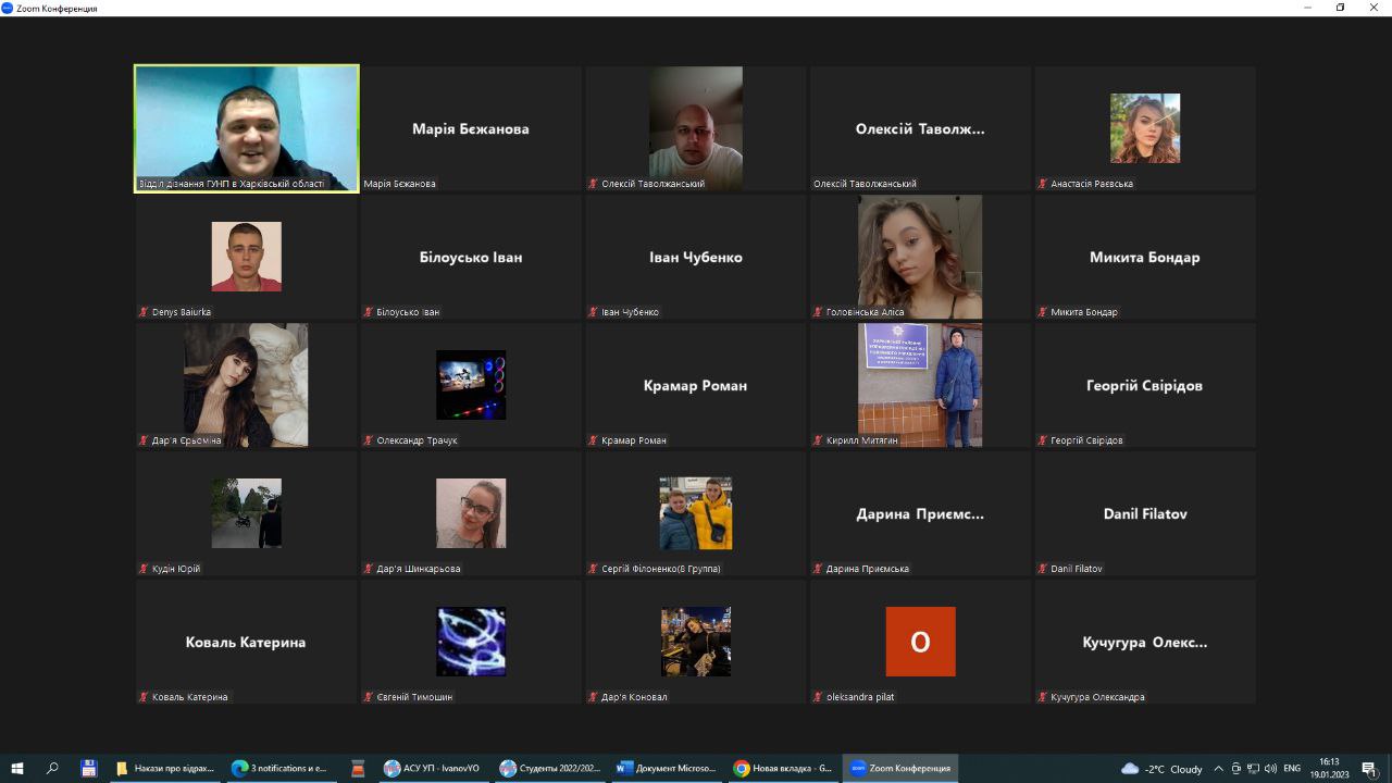 На Факультеті слідчої та детективної діяльності відбувся черговий вебінар в рамках освітнього проекту «Поліцейське розслідування». Лекцію на тему: «Кримінальні проступки» прочитав Начальник відділу дізнання Головного управління Національної поліції в Харківській області підполковник поліції ЗАХАРЧЕНКО Іван Олександрович.