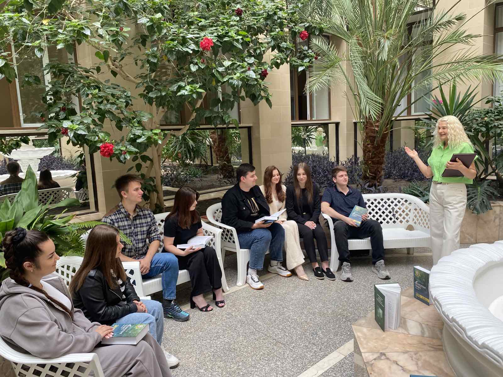 Під час обговорення студенти взяли участь у короткій дискусії на тему: «Як людина шкодить довкіллю?». Було обговорено питання використання поліетиленових пакетів, впливу військових дій, надмірного споживання, застосування пестицидів, збереження енергоресурсів та інших проблем. У процесі дискусії студенти з великим зацікавленням ознайомилися з новим підручником з екологічного права, який було видано у 2024 році авторським колективом викладачів кафедри екологічного права Національного юридичного університету імені Ярослава Мудрого під редакцією доктора юридичних наук, професора, академіка Національної академії правових наук України А. П. Гетьмана. Студенти одностайно висловили думку, що цей підручник стане надійним фундаментом для формування нової еколого-правової культури.