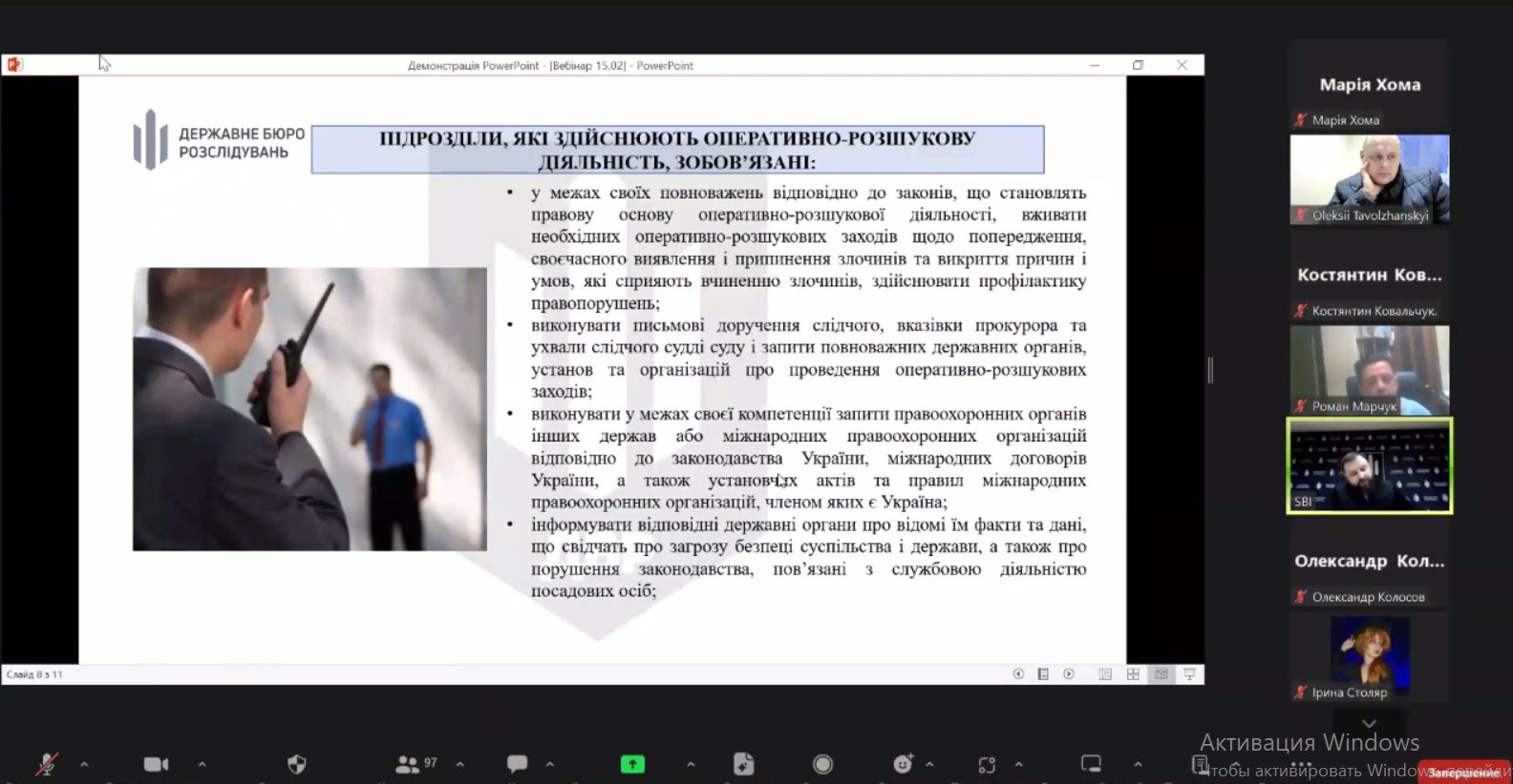 В рамках проєкту працівником Головного оперативного управління Державного бюро розслідувань Полупаном М.М. проведено вебінар за темою «Основи оперативно-розшукової діяльності».