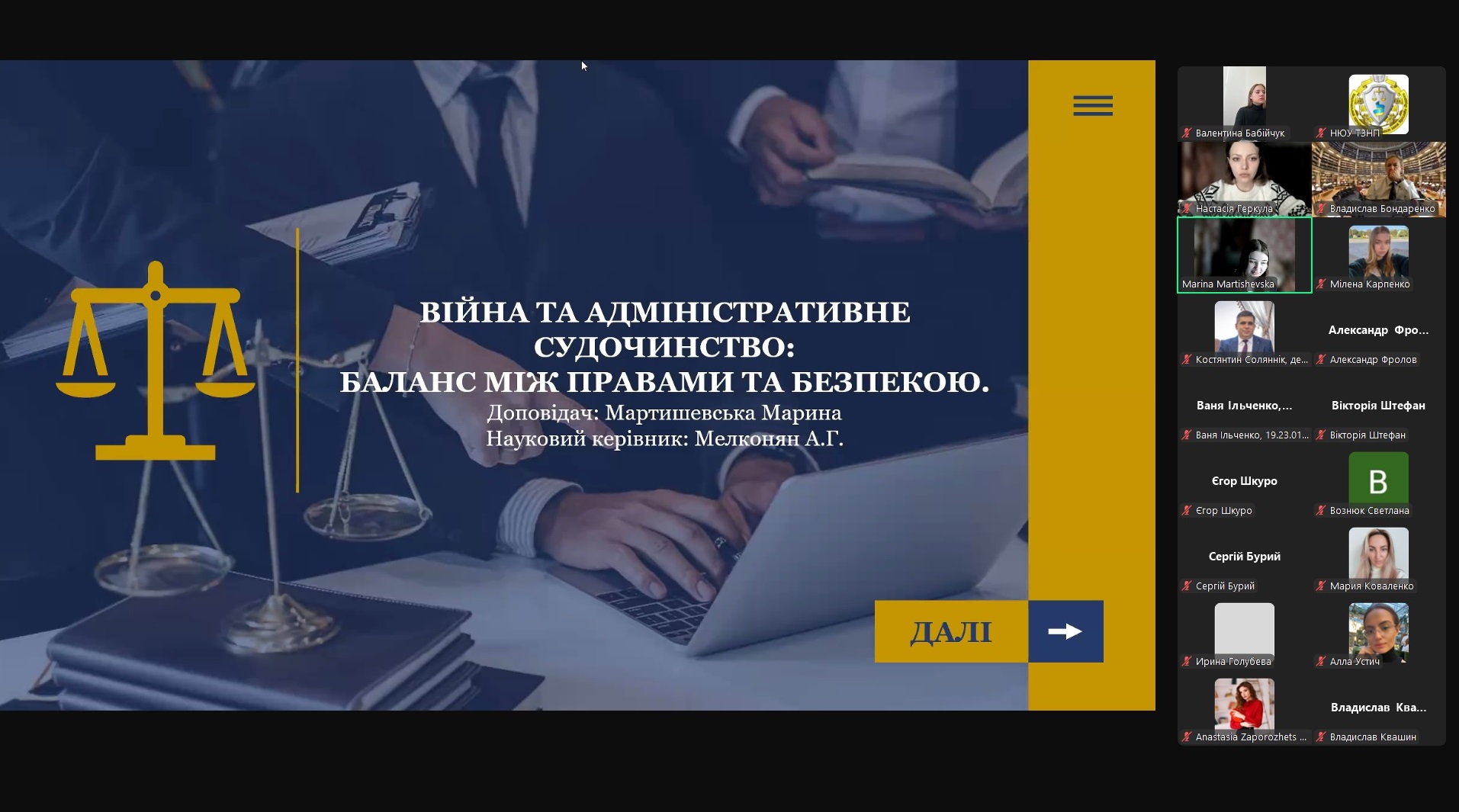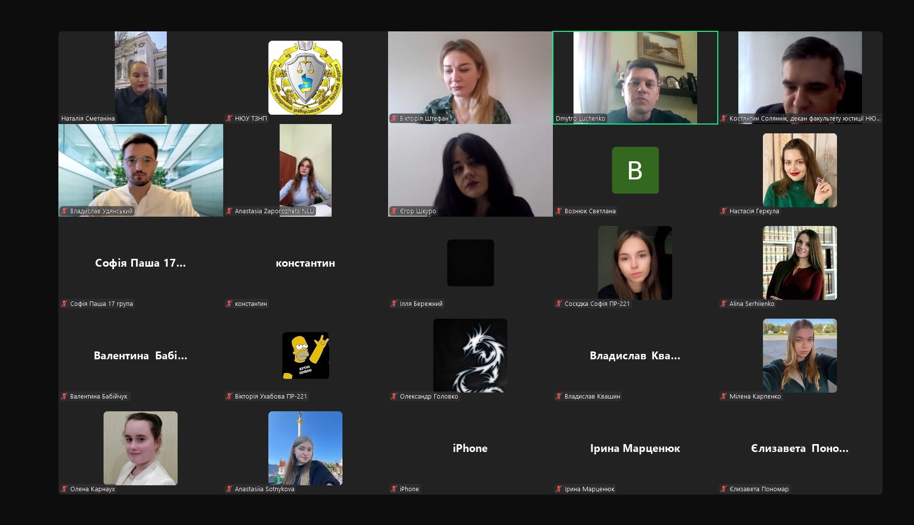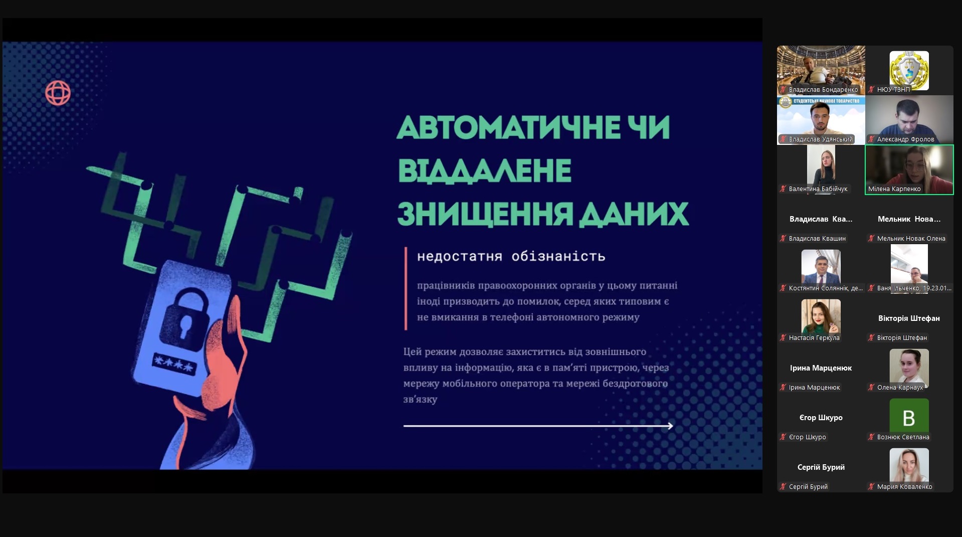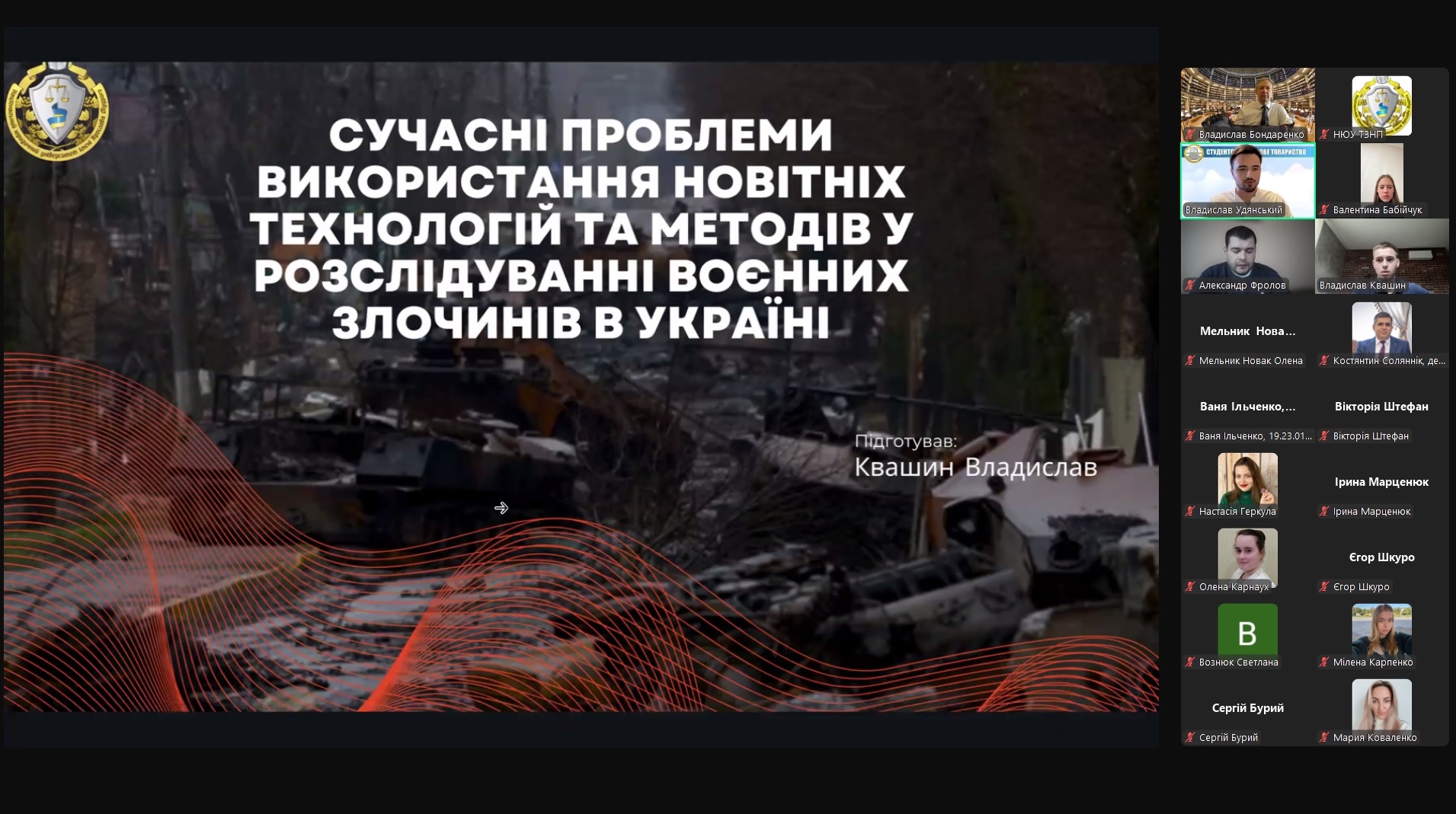 Спікерами наукового заходи виступили: Соляннік Костянтин – к.ю.н., доцент кафедри державного будівництва, декан факультету юстиціі Національний юридичний універсітет імені Ярослава Мудрого; Сметаніна Наталія – в.о. голови Ради молодих вчених, к.ю.н., доцентка кафедри кримінально-правової політики Національного юридичного університету імені Ярослава Мудрого; Бондаренко Владислав – к.мед.н., лікар-судово-медичний експерт вищої кваліфікаційної категорії, доцент кафедри криміналістики Національного юридичного університету імені Ярослава Мудрого; Горбенко Катерина – студентка 2 курсу Навчально-наукового інституту міжнародних відносин Київського національного університету імені Тараса Шевченка; Мельник Олена – к.ю.н., доцентка Полтавського юридичного інституту Національного юридичного університету імені Ярослава Мудрого; Удянський Владислав – голова Студентського наукового товариства, аспірант кафедри цивільного права Національного юридичного університету імені Ярослава Мудрого; Квашин Владислав – студент 4 курсу Національного юридичного університету імені Ярослава Мудрого; Карпенко Мілена – студентка 5 курсу факультету слідчої та детективної діяльності Національного юридичного університету імені Ярослава Мудрого; Марценюк Ірина – студентка 4 курсу Національного юридичного університету імені Ярослава Мудрого; Мартишевська Марина – студентка 3 курсу, групи ПК-32-А, Полтавського фахового коледжу Національного юридичного університету імені Ярослава Мудрого.
