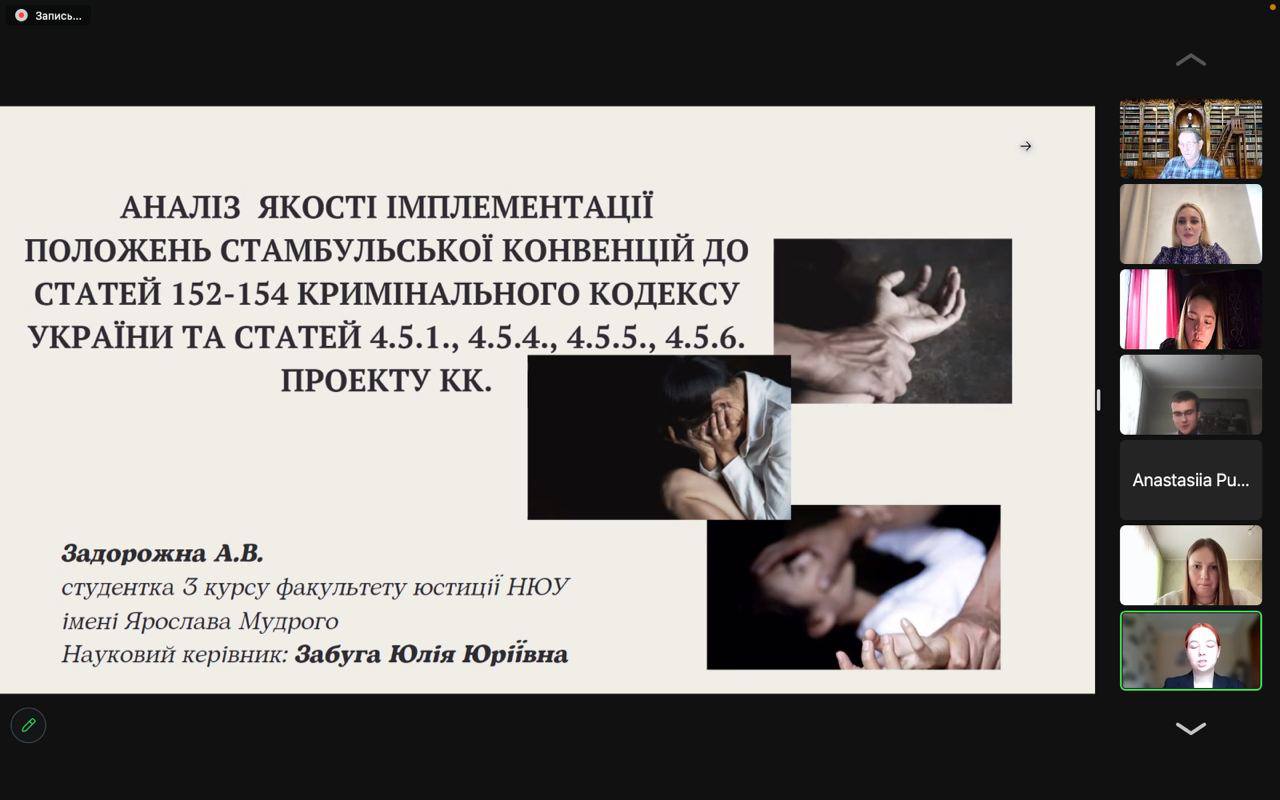 Конкурс продовжив серію заходів Наукові коди поколінь, запроваджених кафедрою кримінального права. Рецензування кожної наукової роботи проводилося двома експертами методом подвійного сліпого рецензування (doubleblind review). Журі було суворим, але справедливим. Відзначено загальний високий рівень кожної з робіт.
