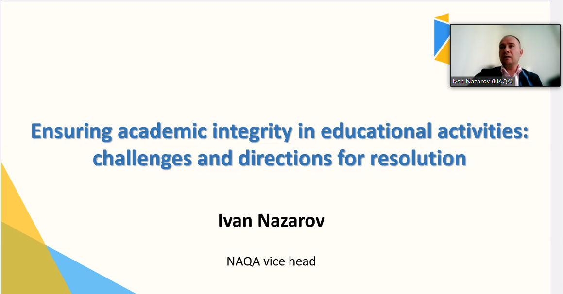 проф. Іван НАЗАРОВ (заступник голови Національного агентства із забезпечення якості вищої освіти), тема виступу: «Забезпечення академічної доброчесності в освітній діяльності: виклики та напрямки вирішення»;