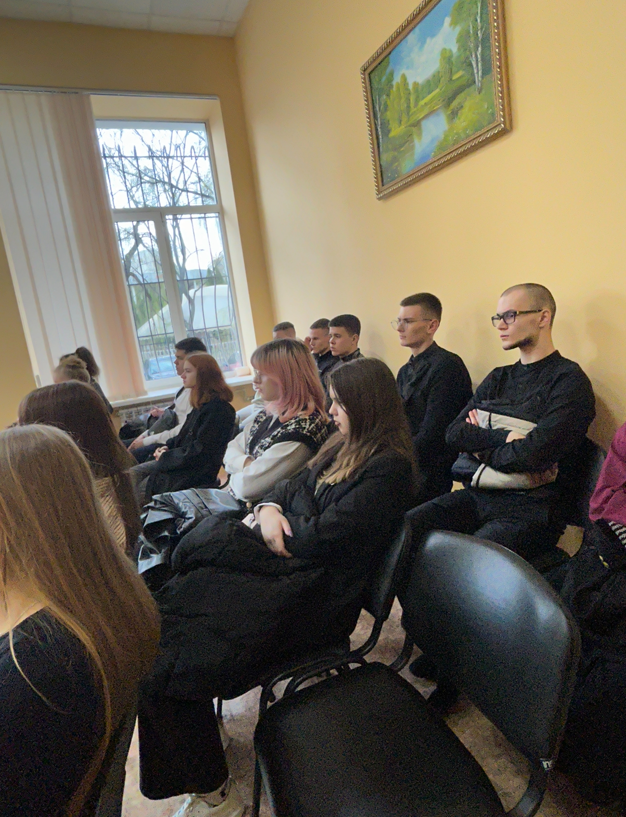 Під час візиту студентів провели підземними приміщеннями будівлі суду, показали спеціально обладнану на одному з підземних поверхів залу судового засідання, створену саме для того, аби не переривати розгляд справи під час повітряних тривог.