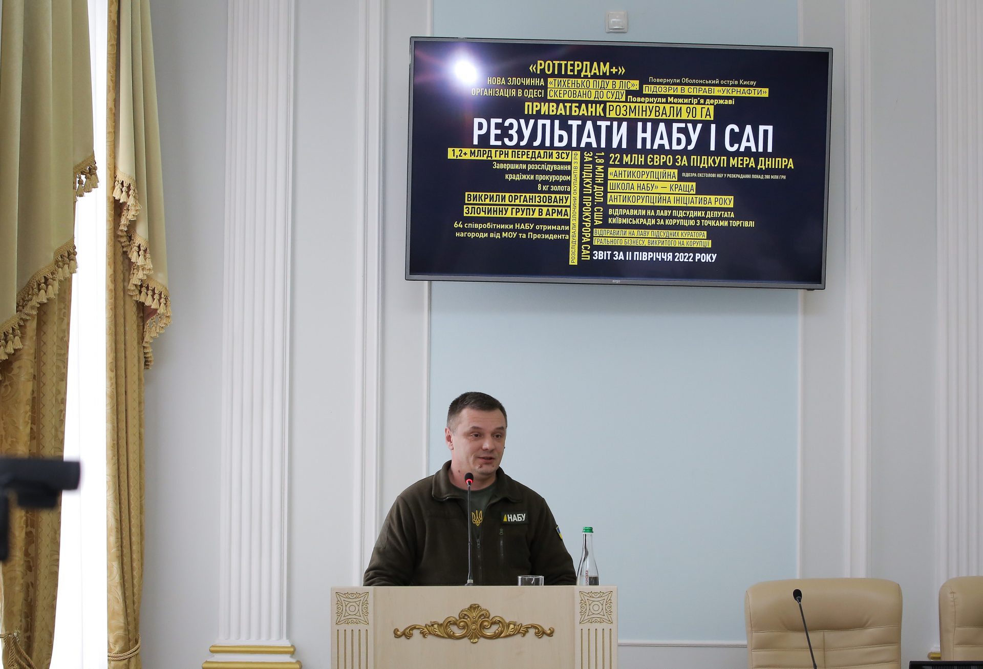 Директор Харківського територіального управління Національного антикорупційного бюро України Юрій КРАВЧЕНКО у доповіді «Діяльність НАБУ І САП в умовах війни: досягнення і проблеми» повідомив про внесок НАБУ в оборону України, а також висвітлив досягнення НАБУ та виклики під час війни. Зокрема, внесок НАБУ у відсіч збройної агресії полягає в тому, що значна кількість співробітників стали на захист України, із них 64 отримали воєнні нагороди та відзнаки від Президента України та МОУ; за даними від НАБУ уражено 120 об’єктів ворога, здійснено 14 контрдиверсійних оперативно-бойових заходів, затримано 36 колаборантів і коригувальників вогню, розміновано понад 37 км доріг та узбіч, 2 га лісу, 6,8 км ділянок ліній електропередач, знешкоджено понад 300 різних типів і видів боєприпасів. Станом на 31.12.2022 р. НАБУ розслідується 716 кримінальних проваджень, повідомлено про підозру 413 особам, скеровано до суду 414 обвинувальних актів, на лаві підсудних ВАКС опинилися 799 осіб. Найчастіше на корупційних зловживаннях працівники НАБУ викривають керівників державних підприємств, народних депутатів України різних скликань, суддів, членів НКРЕКП, топпосадовців ДПСУ та ін. Економічний ефект від діяльності НАБУ станом на 31.12.2022 складав 5,795 млрд грн, що значно перевищує витрати на утримання цього органу. Кількість осіб, викритих на корупції у другому півріччі 2022 року, стала рекордною в історії антикорупційних органів. У згаданому періоді 149 осіб отримали підозри від НАБУ і САП, це більше, ніж за 12 місяців 2021 чи 2020 року.