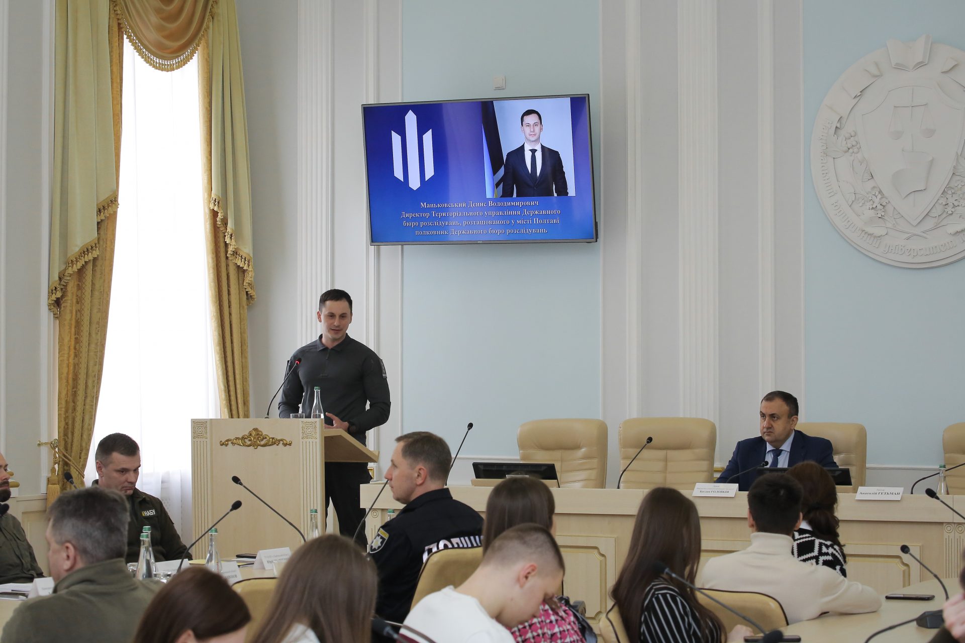 Директор Територіального управління Державного бюро розслідувань, розташованого в місті Полтаві, полковник ДБР Денис МАНЬКОВСЬКИЙ у доповіді «Стан протидії злочинності за пріоритетними напрямами в умовах воєнного стану» проінформував присутніх про результати роботи ТУ ДБР у 2022 році за пріоритетними напрямами роботи. Для підвищення ефективності протидії злочинності спікер запропонував такі законодавчі зміни: