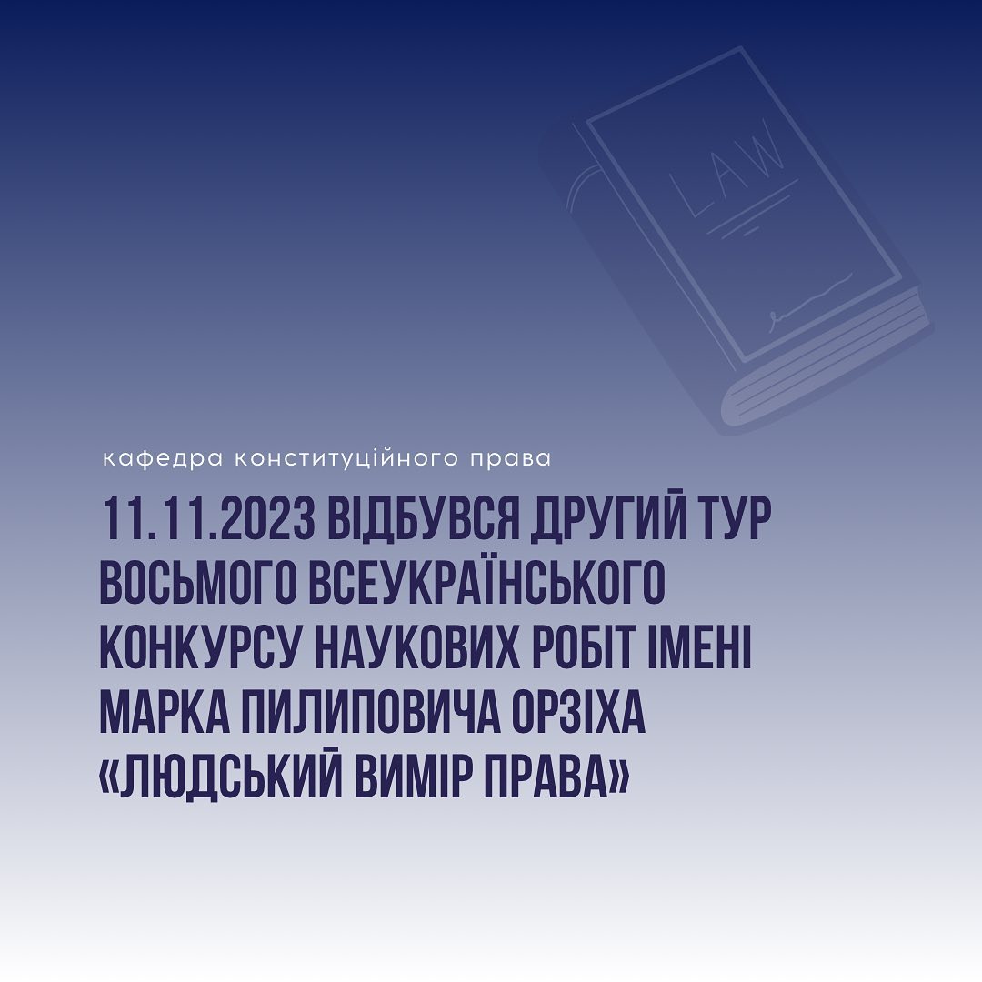11 листопада 2023 відбувся другий тур восьмого всеукраїнського конкурсу наукових робіт імені Марка Пилиповича Орзіха «Людський вимір права», з метою збереження поваги до творчого доробку Одеської школи права та, зокрема, М. П. Орзіха, продовження наукових пошуків у царині людського виміру у контексті актуальних правничих питань та подій, зацікавлення студентів у вивченні засад конституціоналізму та прав людини.
