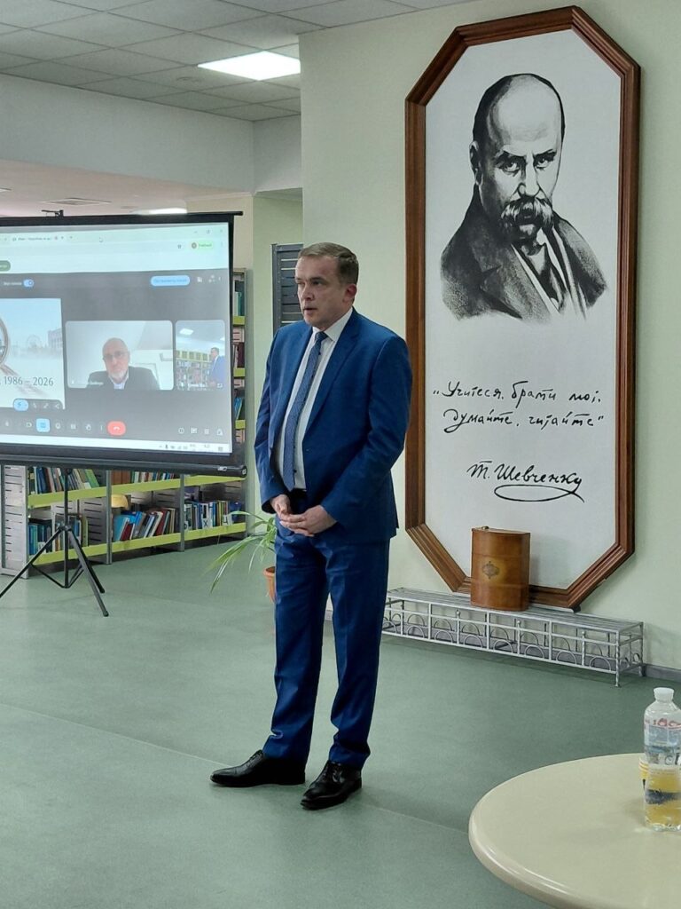 Захід відкрив проректор з науково-педагогічної роботи та міжнародної діяльності Юрій Пономаренко. Він звернув увагу аудиторії на глобальному масштабі трагедії: «Україна пережила багато випробувань — війни, голодомори, епідемії. Але найбільша техногенна катастрофа Європи, на жаль, теж сталася на нашій землі. Сьогодні Чорнобиль — це рана, яка знову почала кровоточити у 2022-му через акти ядерного тероризму агресора».