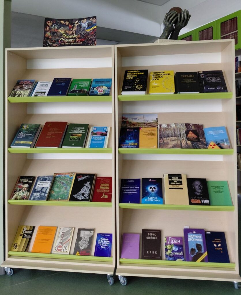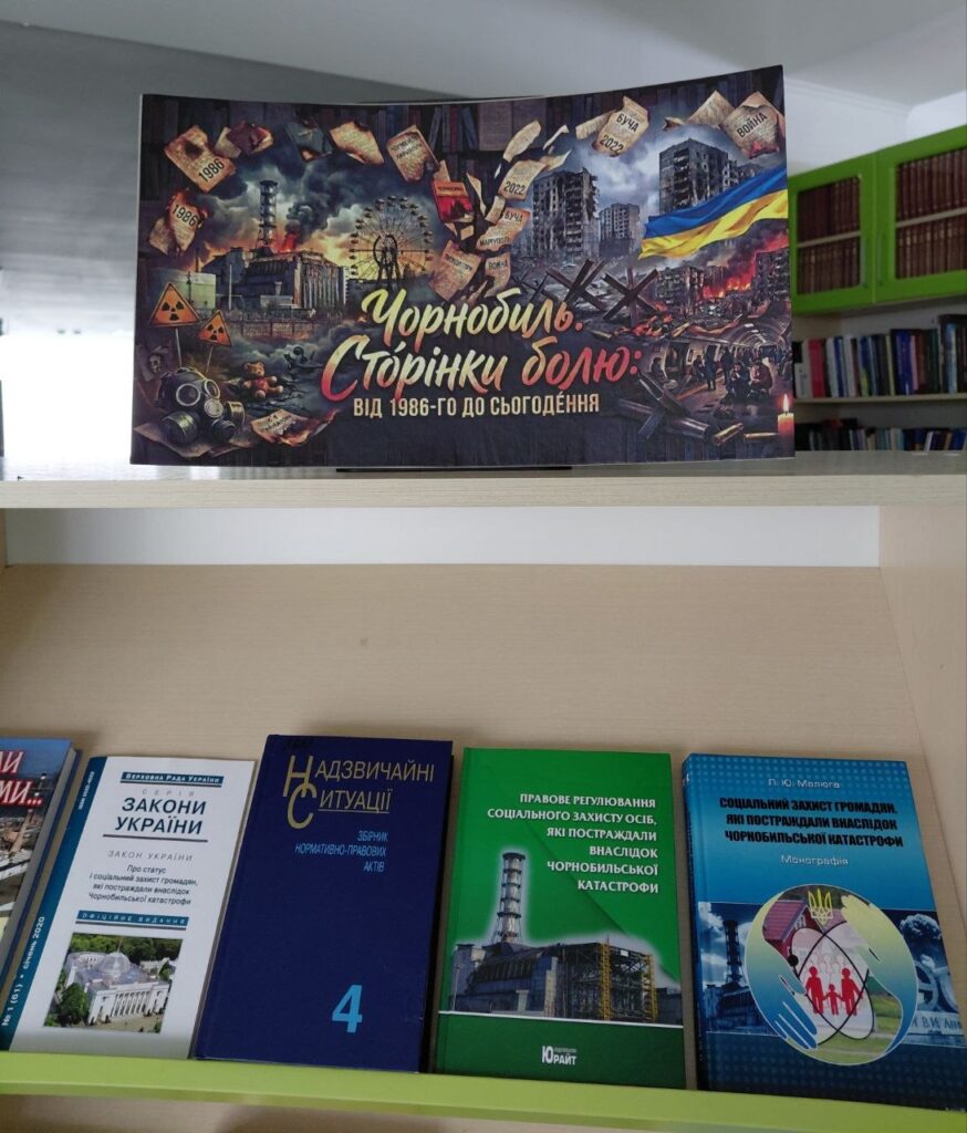 🔵книжковою експозицією «Сторінки болю: від 1986-го до сьогодення». На виставці були представлені видання, правові акти та документальні свідчення, що розкривають складні етапи ліквідації наслідків аварії.