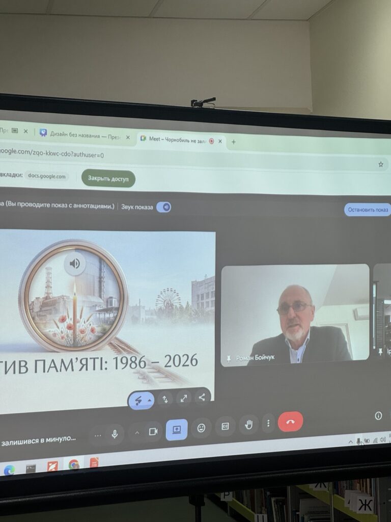 22 квітня 2026 року бібліотека Національного юридичного університету імені Ярослава Мудрого стала майданчиком для проведення виховної години, присвяченої 40-м роковинам аварії на Чорнобильській АЕС. У спільному колі пам’яті зібралися науковці, представники деканатів, співробітники та здобувачі вищої освіти факультетів: адвокатури, права та економічної безпеки, прокуратури, слідчої та детективної діяльності, юстиції, міжнародного та європейського права, а також Інституту Служби безпеки України.