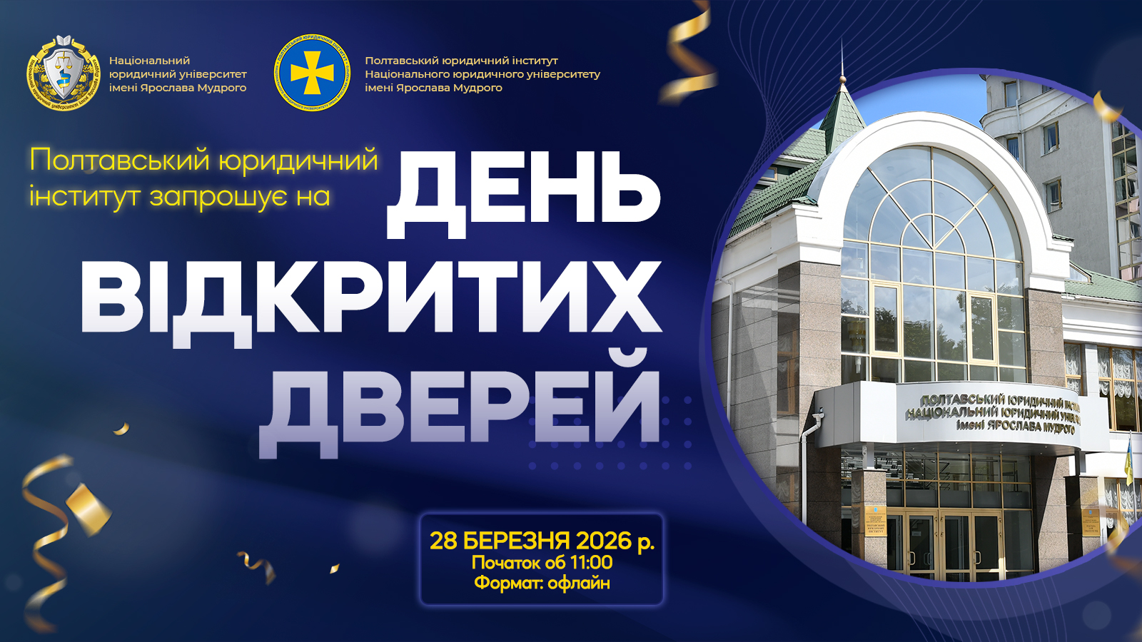 Полтавський юридичний інститут Національного юридичного університету імені Ярослава Мудрого запрошує майбутніх вступників, їхніх батьків та всіх зацікавлених у здобутті якісної юридичної освіти на День відкритих дверей.