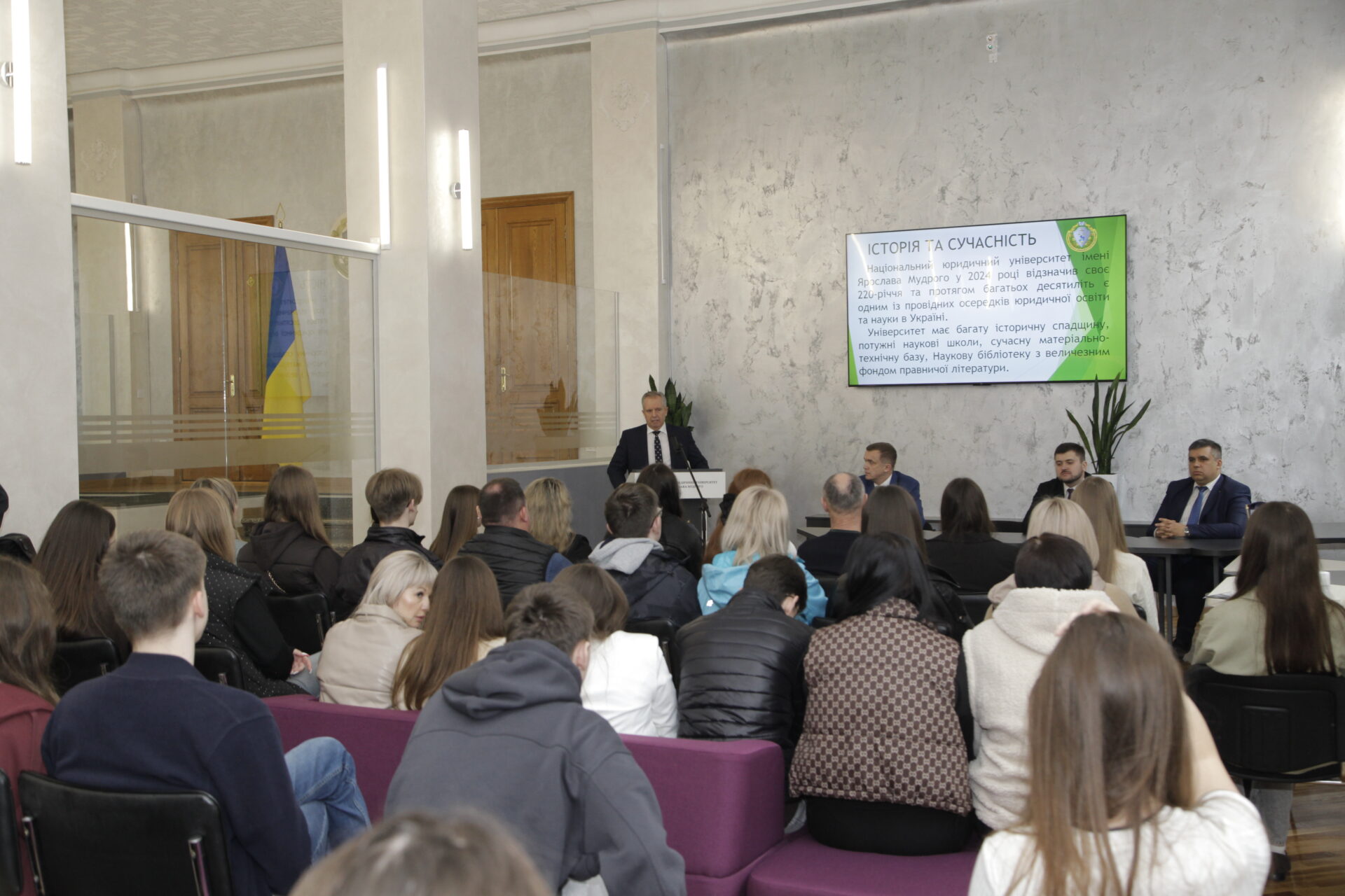 Сьогодні в Національному юридичному університеті імені Ярослава Мудрого відбувся День відкритих дверей — масштабний профорієнтаційний захід, який надав вступникам та їхнім батькам можливість отримати цілісне уявлення про освітнє середовище та перспективи, які відкриває Університет.