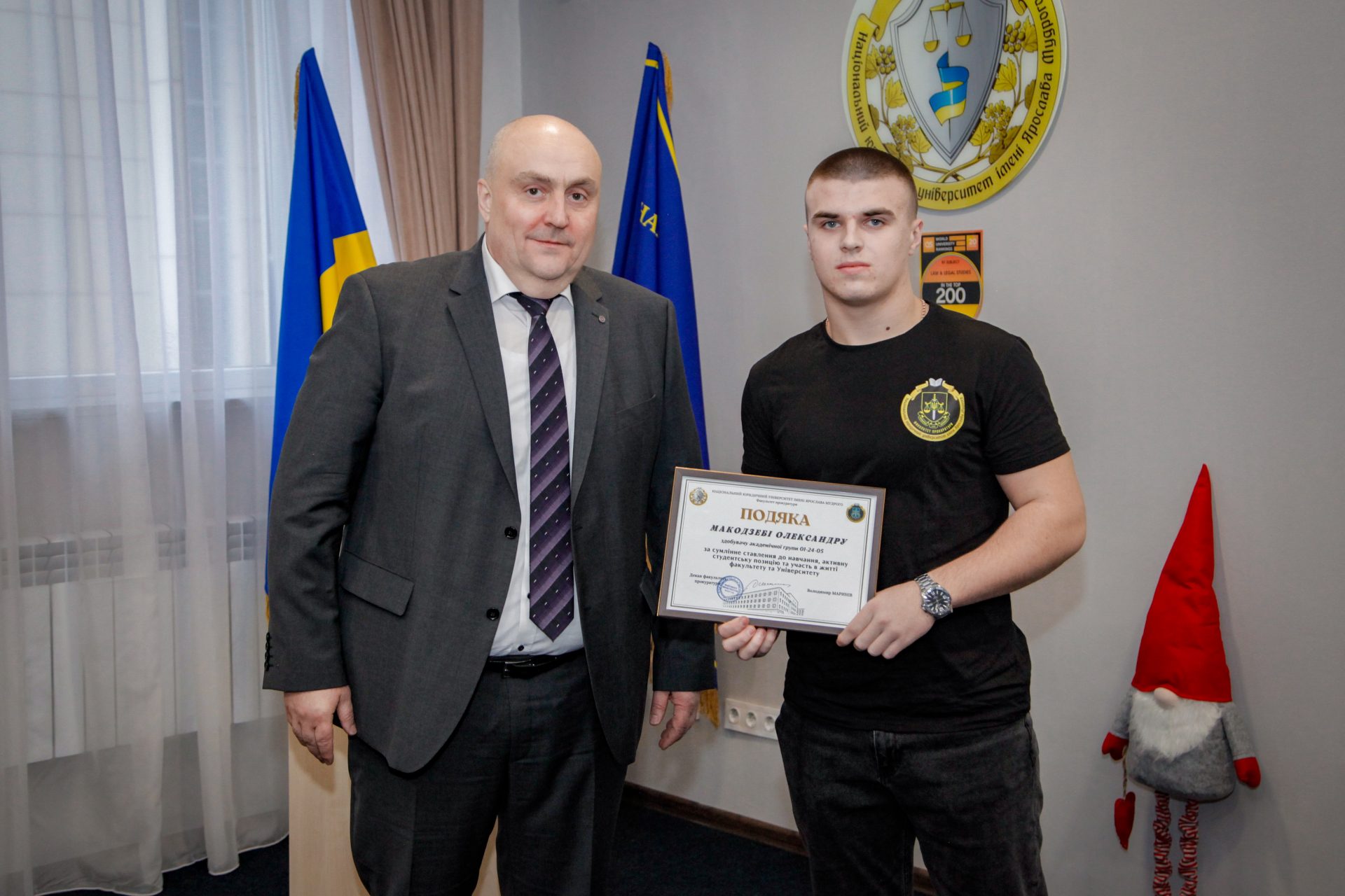 Також Володимир Маринів відзначив Подяками Декана здобувачів, які беруть активну участь в житті Факультету та Університету! Важко сказати, що це було відзначення найкращих студентів факультету, бо в нашому Університеті та на Факультеті – всі студенти найкращі. Факультет прокуратури пишається і завжди пишався своїми студентами та готовий підтримати і допомогти кожному.