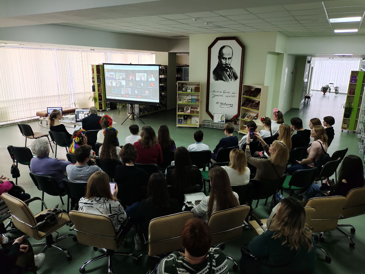 Саме цього дня до наукової бібліотеки Університету завітали учні Харківського ліцею № 152 разом із вчителями та батьками, студенти факультетів прокуратури, приватного права та підприємництва, адвокатури, для кого поетове слово втілює віру в нашу Перемогу над російським агресором, всиляє віру в нездоланність українського духу, незламність нації, а любов Великого Кобзаря до рідної України надихає все нові й нові покоління патріотів.