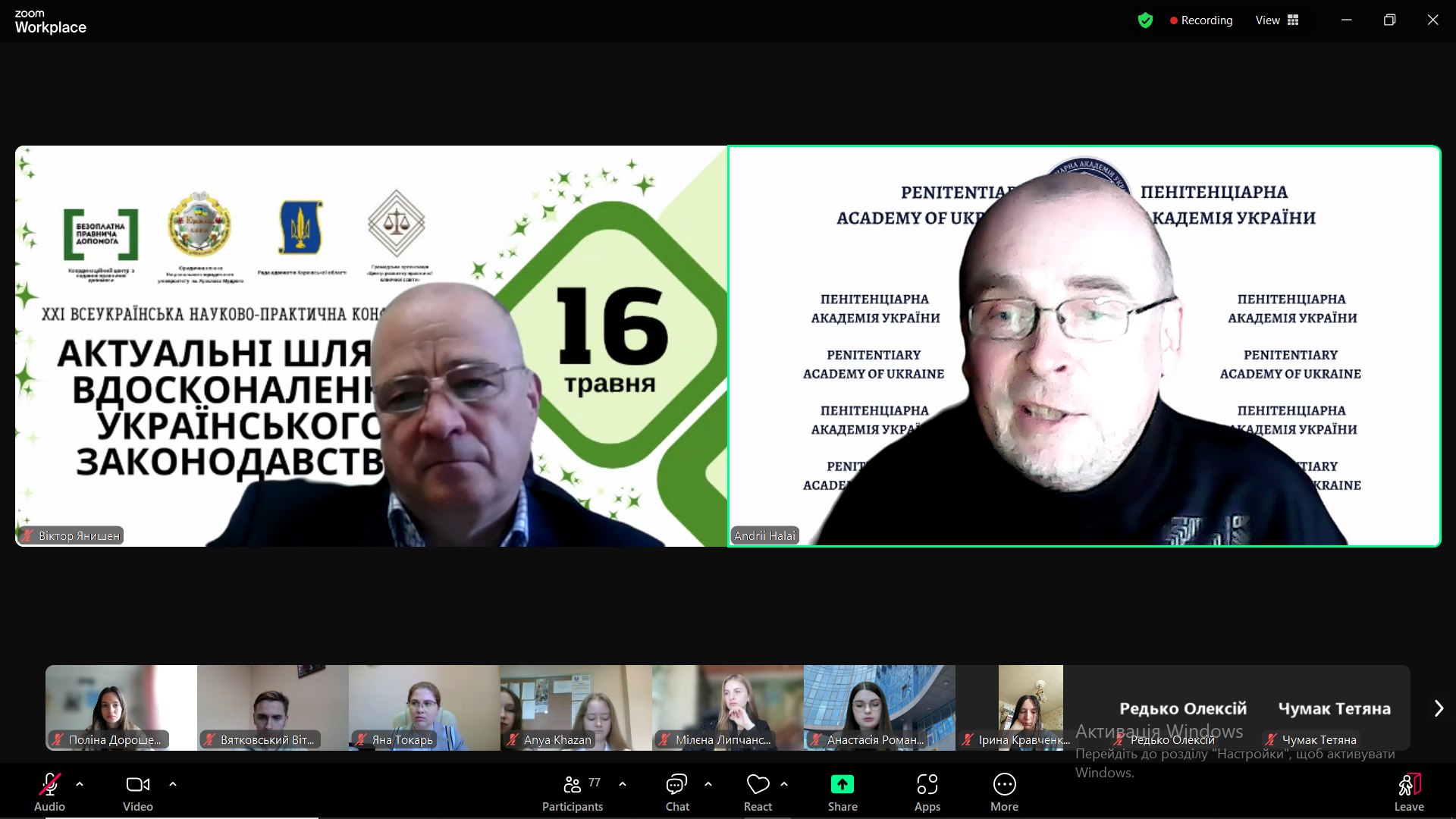 · Андрія Галая – доктора юридичних наук, професора, начальника науково-дослідного центру пенітенціарії та кримінальної юстиції Навчально-наукового інституту права, правоохоронної діяльності та психології Пенітенціарної академії України. Він акцентував на потенціалі клінічної освіти для реформування правничого середовища в умовах криз.