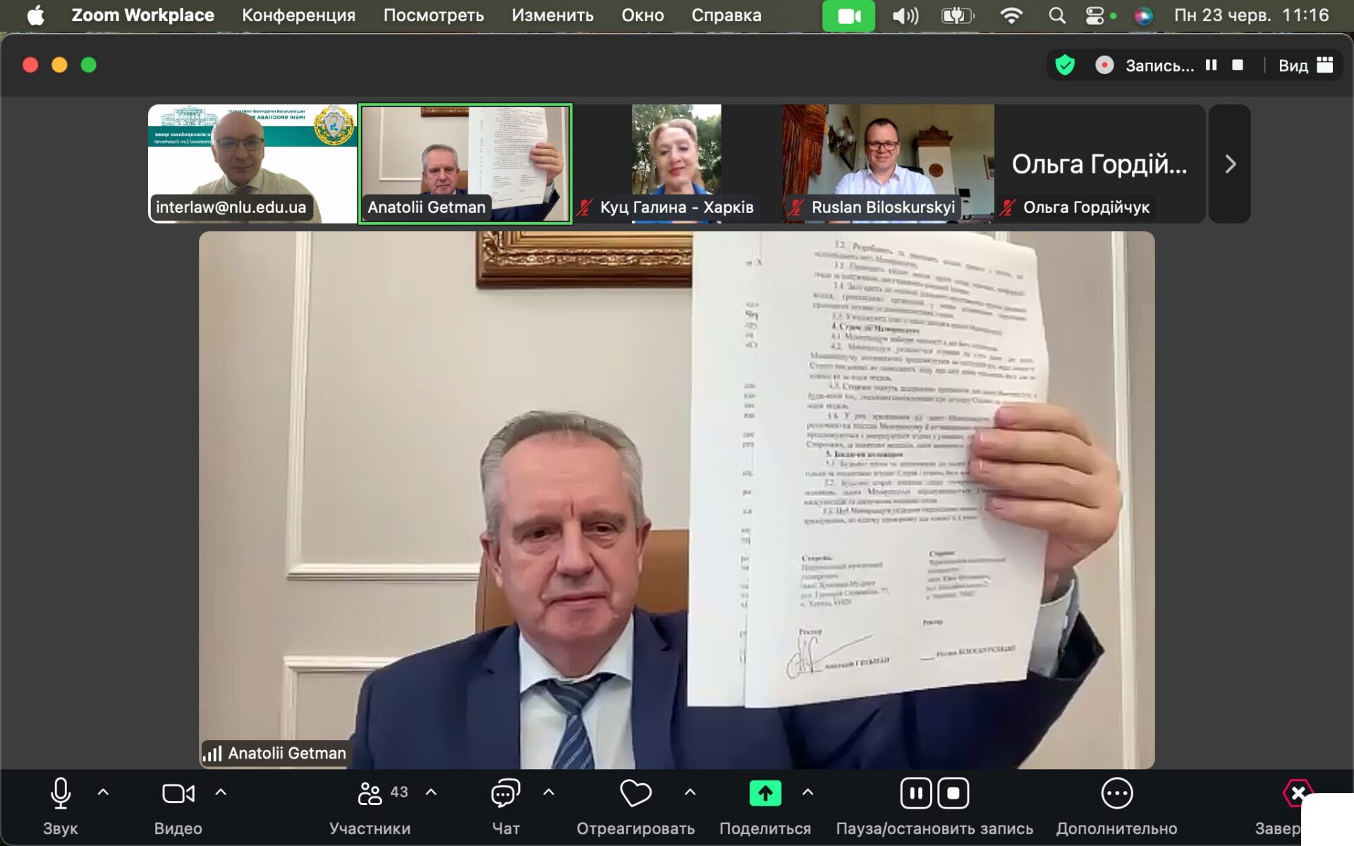 З вітальним словом до учасників заходу звернулися Анатолій Гетьман, ректор Національного юридичного університету імені Ярослава Мудрого і Руслан Білоскурський, ректор Чернівецького національного університету імені Юрія Федьковича.