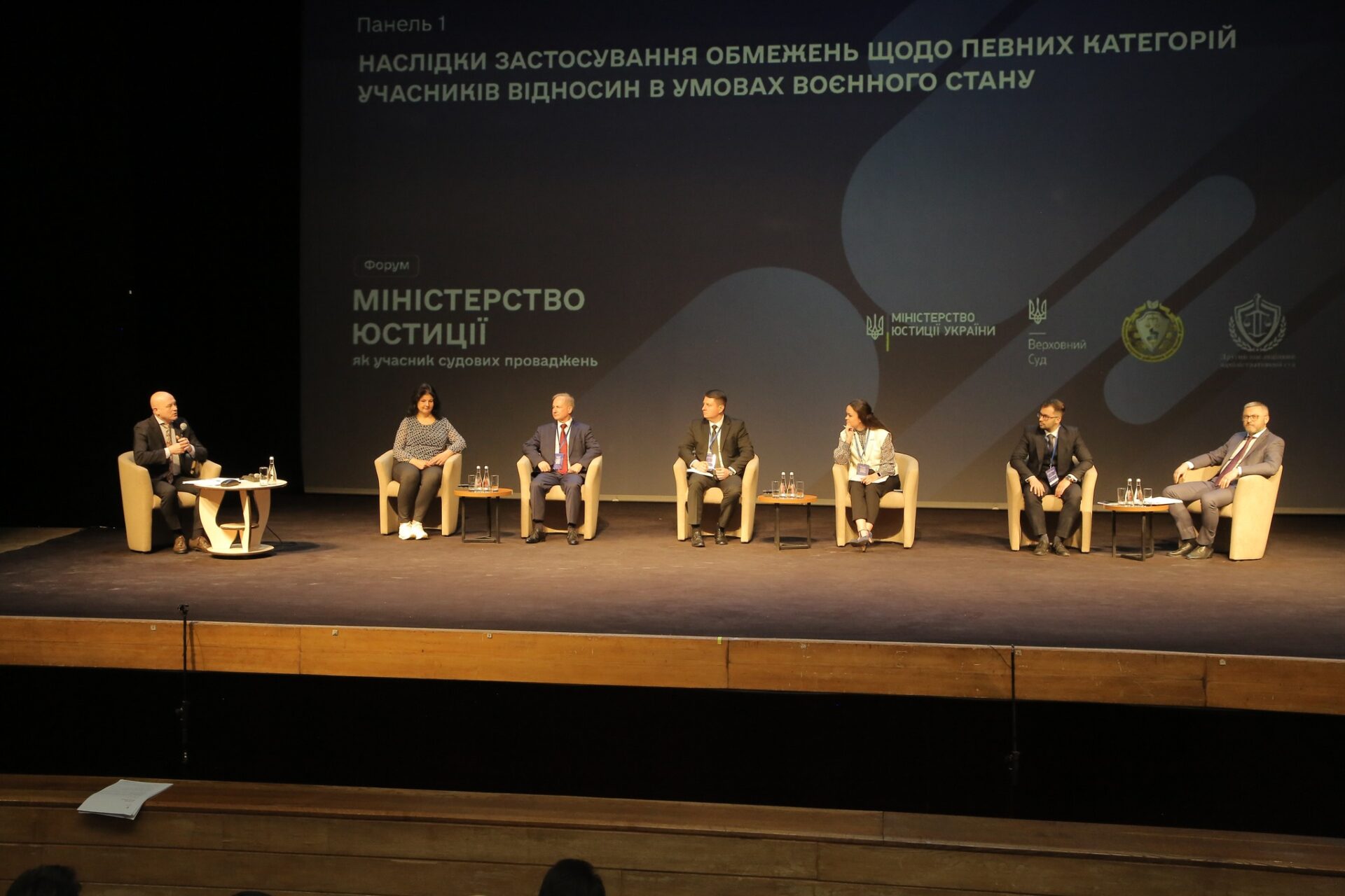 Панель 1: Наслідки застосування обмежень щодо певних категорій учасників правовідносин. Тематика включала санкційну політику, конфіскацію активів, заборону політичних партій, розшук майна, а також заборону пропаганди тоталітарних ідеологій. Серед спікерів – представники Міністерства юстиції, судді Верховного Суду, адвокати та фахівці з державної реєстрації.