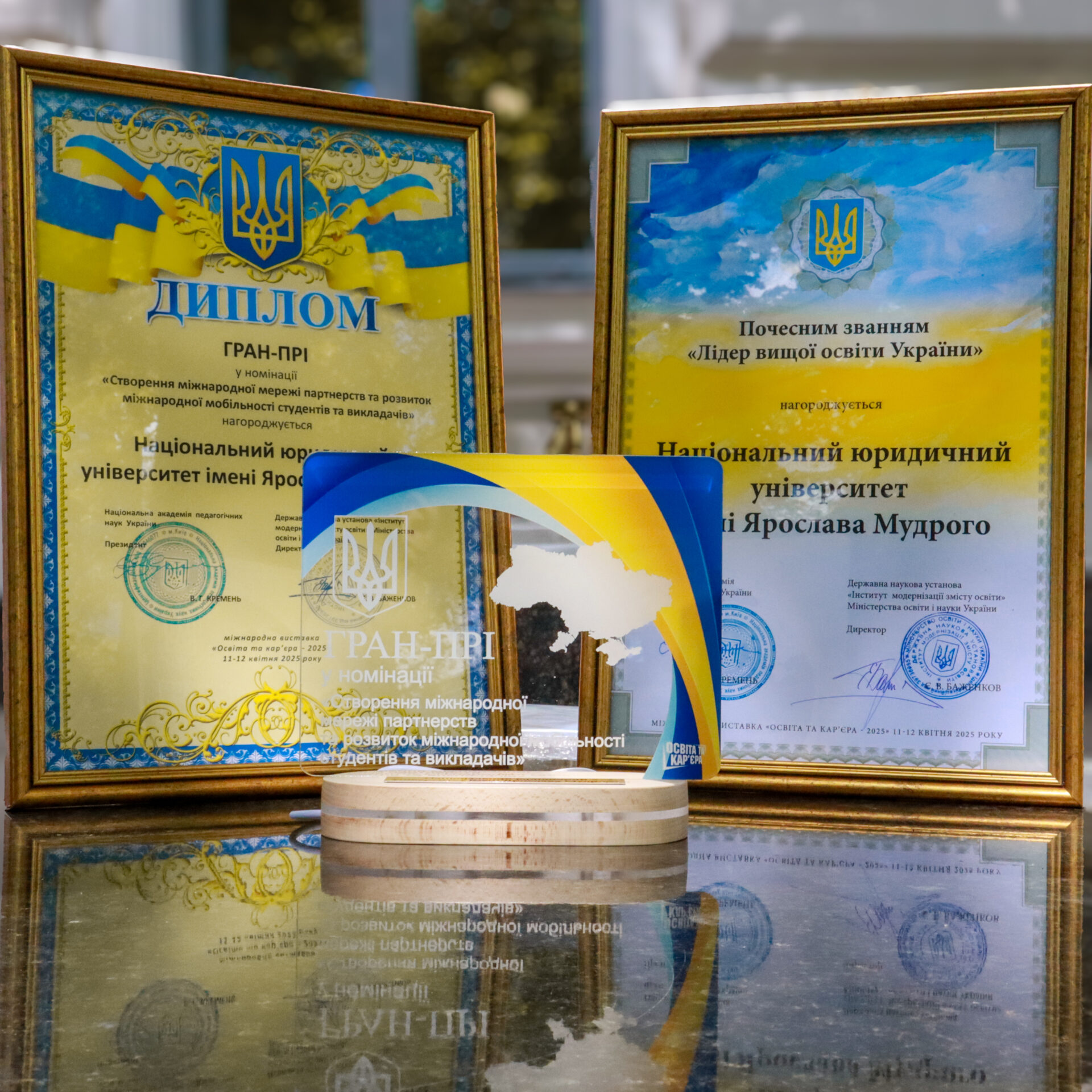 Національний юридичний університет імені Ярослава Мудрого здобув почесне звання “Лідер вищої освіти України”, а також був відзначений однією з найвищих нагород виставки — Гран-прі у номінації “Створення міжнародної мережі партнерств та розвиток міжнародної мобільності студентів і викладачів”.
