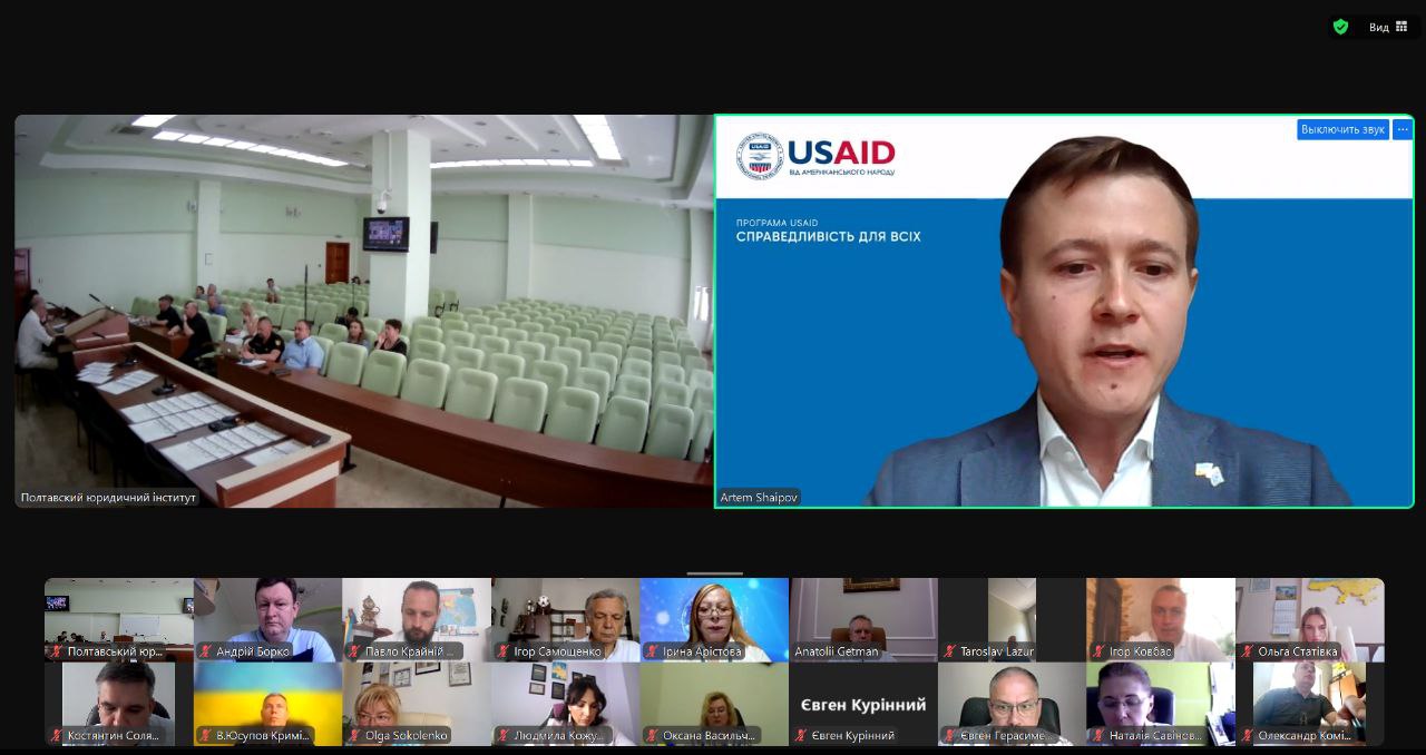 Ініціатива була беззаперечно підтримана всіма учасниками, з промовами до яких звернулися: ректор нашого Університету – Анатолій Гетьман, народний депутат України Юлія Гришина, юридичний радник Програми USAID «Справедливість для всіх» Артем Шаіпов та директор Центру українсько-європейського наукового співробітництва Михайло Віхляєв.