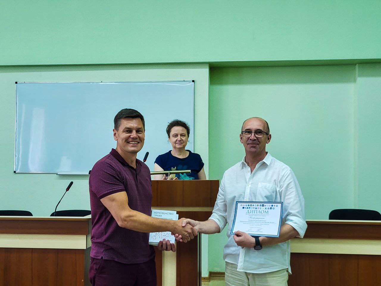 Проректор з наукової роботи Університету – Дмитро Лученко разом із деканом юридичного факультету Тетяною Коломоєць, як організатори проєкту «Незламні правничі школи України», виступили в якості модераторів Форуму. Саме Тетяну Коломоєць, спільнота керівників правничих шкіл України, обрала першим президентом новоствореної асоціації. Її наступником – президентом, який керуватиме роботою організації з липня 2025 року, обрано декана факультету слідчої та детективної діяльності Богдана Головкіна.