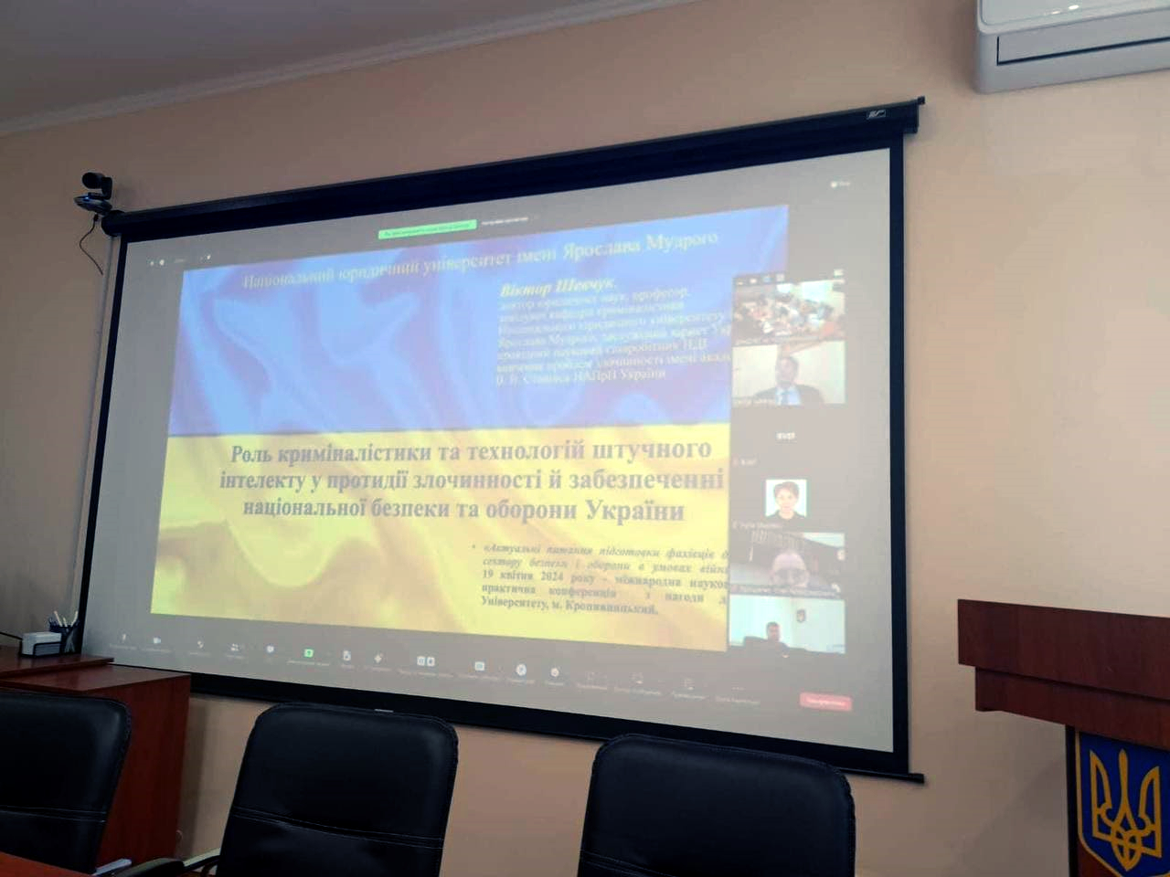 Завідувач кафедри криміналістики, професор Віктор Шевчук, виступив із науковою доповіддю «Роль криміналістики та технологій штучного інтелекту у протидії злочинності й забезпеченні національної безпеки і оборони України». Доповідач зазначив, що забезпечення оборони та безпекового середовища в державі сьогодні є одним із головних завдань, яке поставало перед Україною впродовж її багатовікової історії. Повномасштабна збройна агресія РФ проти України оголила численні загрози, що виникли не тільки перед нашою державою, а й перед всією світовою системою безпеки в цілому. Тому забезпечення національної безпеки та обороноздатності України має стати головним пріоритетом діяльності України та військово-політичного керівництва держави.