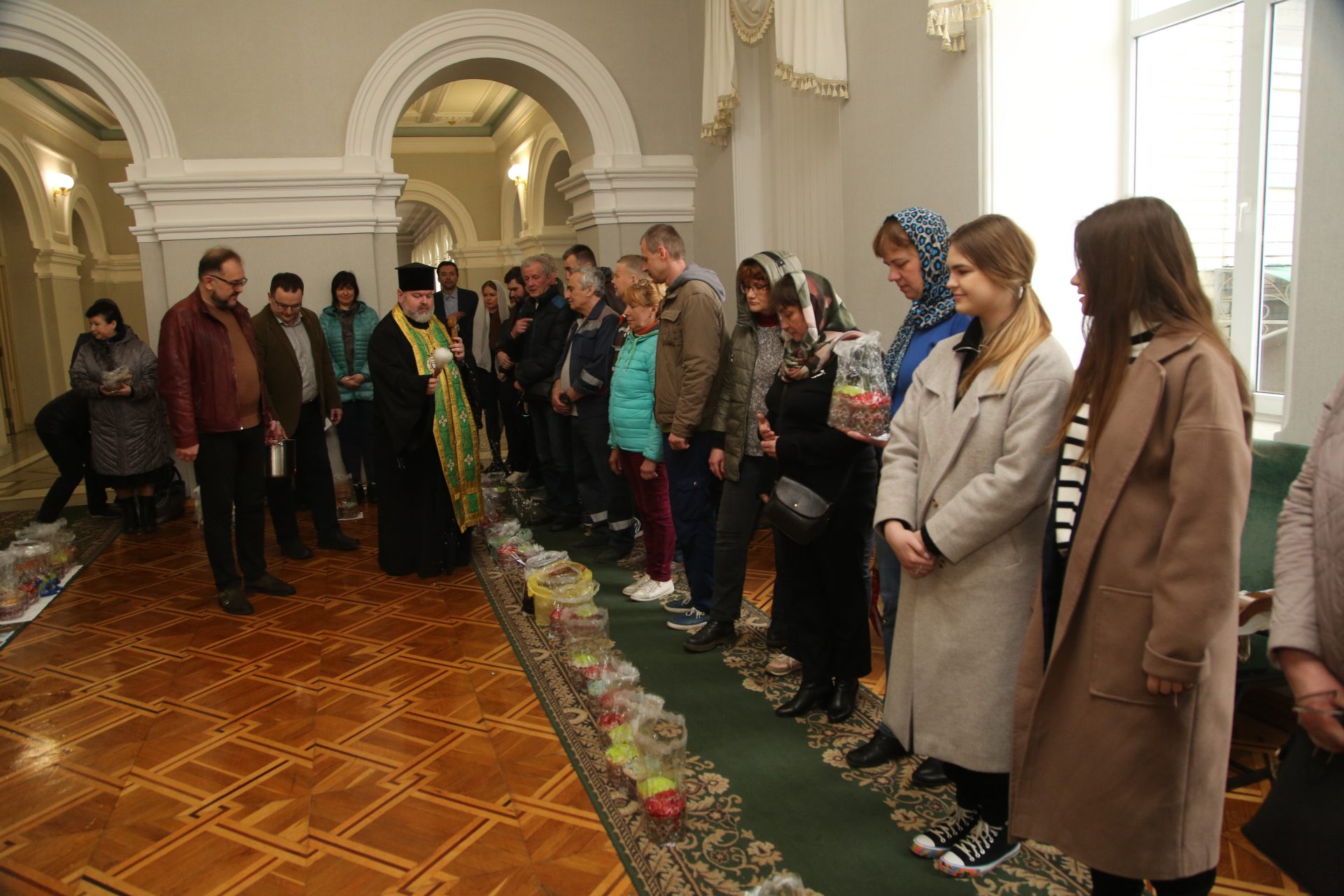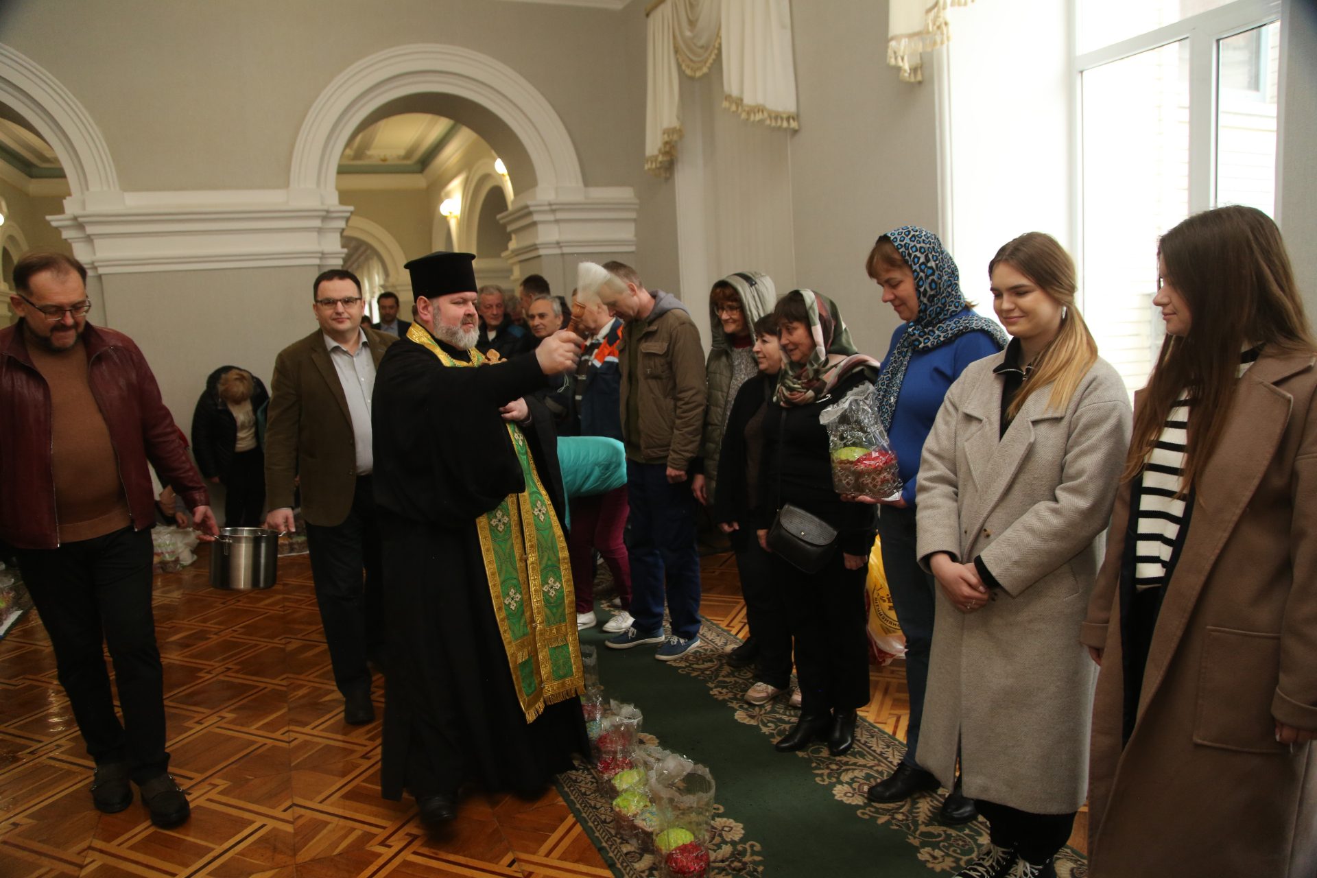 Сьогодні Національний юридичний університет імені Ярослава Мудрого привітав своїх співробітників із прийдешнім великим святом Великоднем. Університет організував особливу подію, запросивши священника Владику Мітрофана для освячення пасок, які кожен зі співробітників отримали безкоштовно в університетській столовій напередодні.