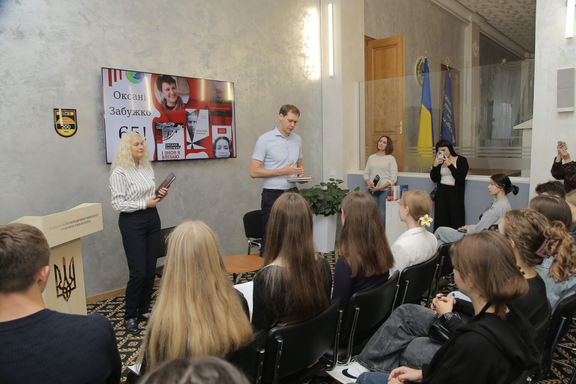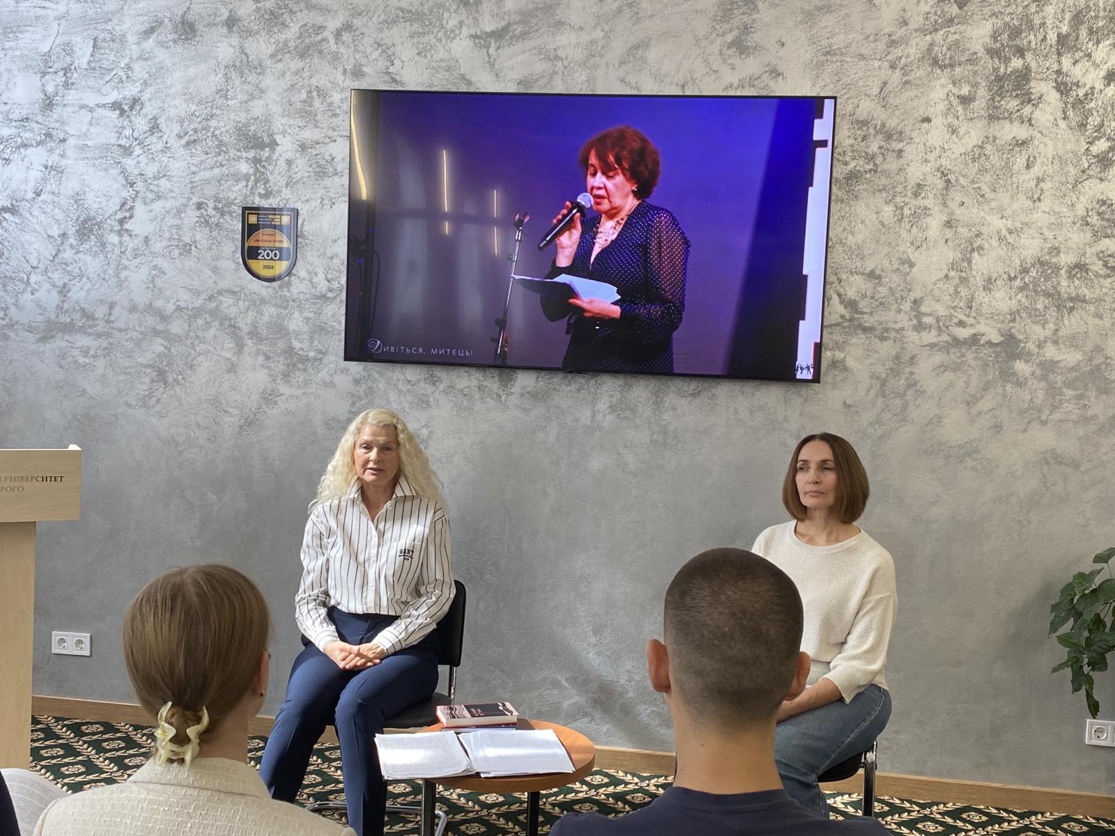 Студенти, у свою чергу, які досить добре обізнані творчістю письменниці, підготували змістовні та цікаві повідомлення. Так, Дарʼя Каліберда повідомила про дитячі та юнацькі роки письменниці; Владислав Каменський надав інформацію про державні нагороди та відзначення майстрині слова; Аліна Скабʼяк підготувала творчий огляд книги «Музей покинутих секретів» літераторки; Крістіна Глушакова розкрила головну ідею книги «Тут могла б бути Ваша реклама» письменниці.