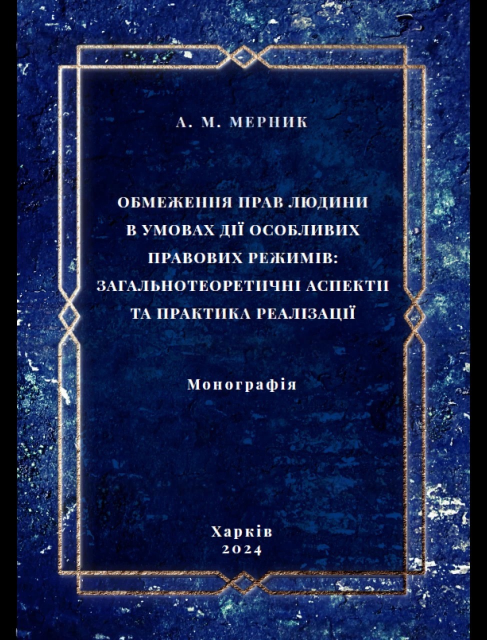 Згадувана монографія вийшла друком у 2024 році, висвітлює актуальні проблеми обмеження прав людини в Україні, починаючи із 2014 року. Авторка теоретично узагальнила і запропонувала вирішення теоретичної та прикладної проблем, які полягають у формулюванні концепції обмеження прав людини в умовах дії особливих правових режимів У монографії висвітлено питання теоретико-правових учень щодо обмеження прав людини, досліджено основні підходи до розуміння категорії „особливі правові режими“ та здійснено їхню класифікацію. У цьому контексті Анастасія Мерник акцентувала на особливостях обмеження прав людини в Україні, зокрема під час боротьби з поширенням коронавірусної інфекції Сovid-19.