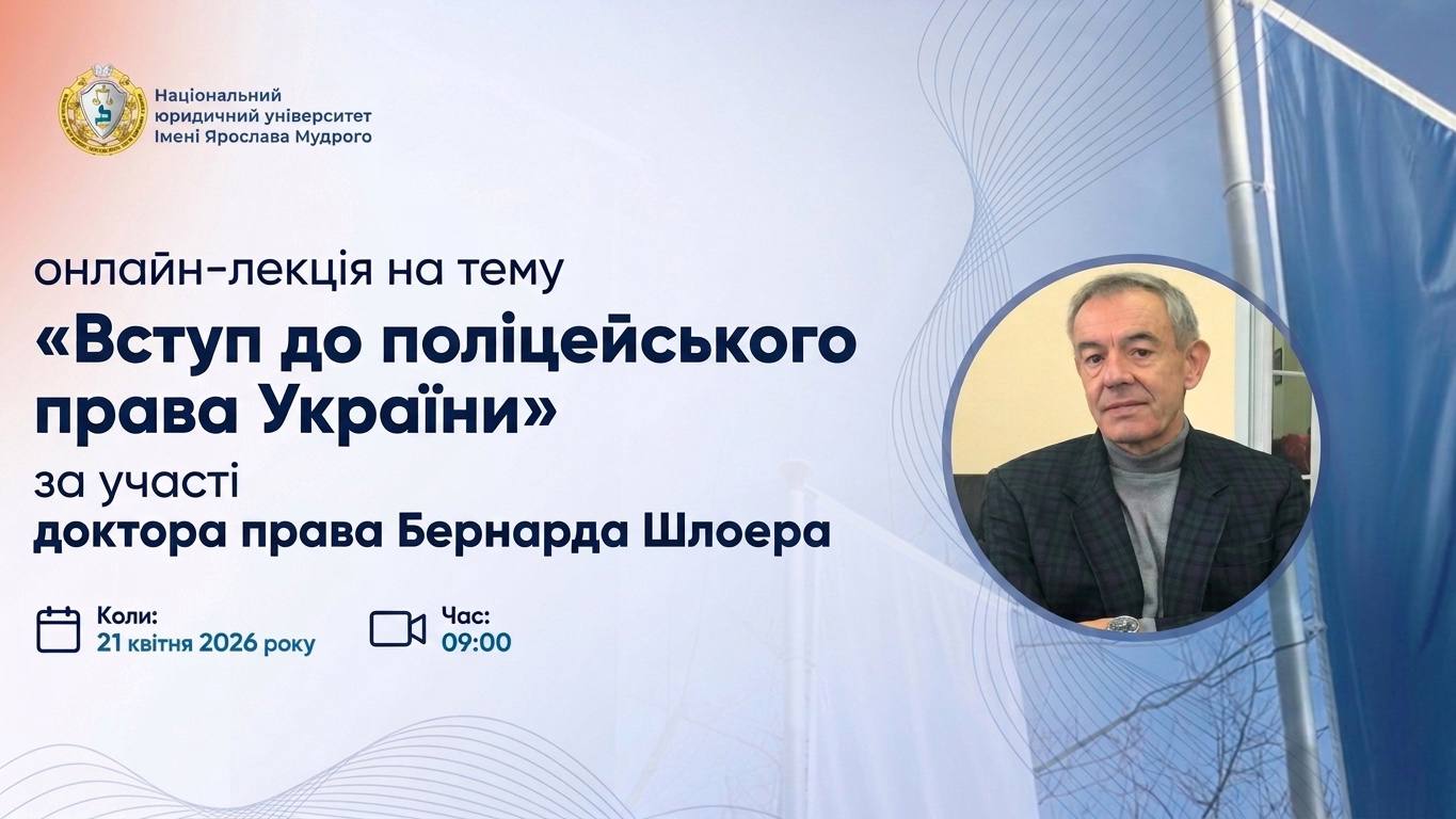 21 квітня 2026 року о 09:00 відбудеться онлайн-лекція на тему «Вступ до поліцейського права України», присвячена розкриттю базових положень поліцейського права, його функцій та принципів.