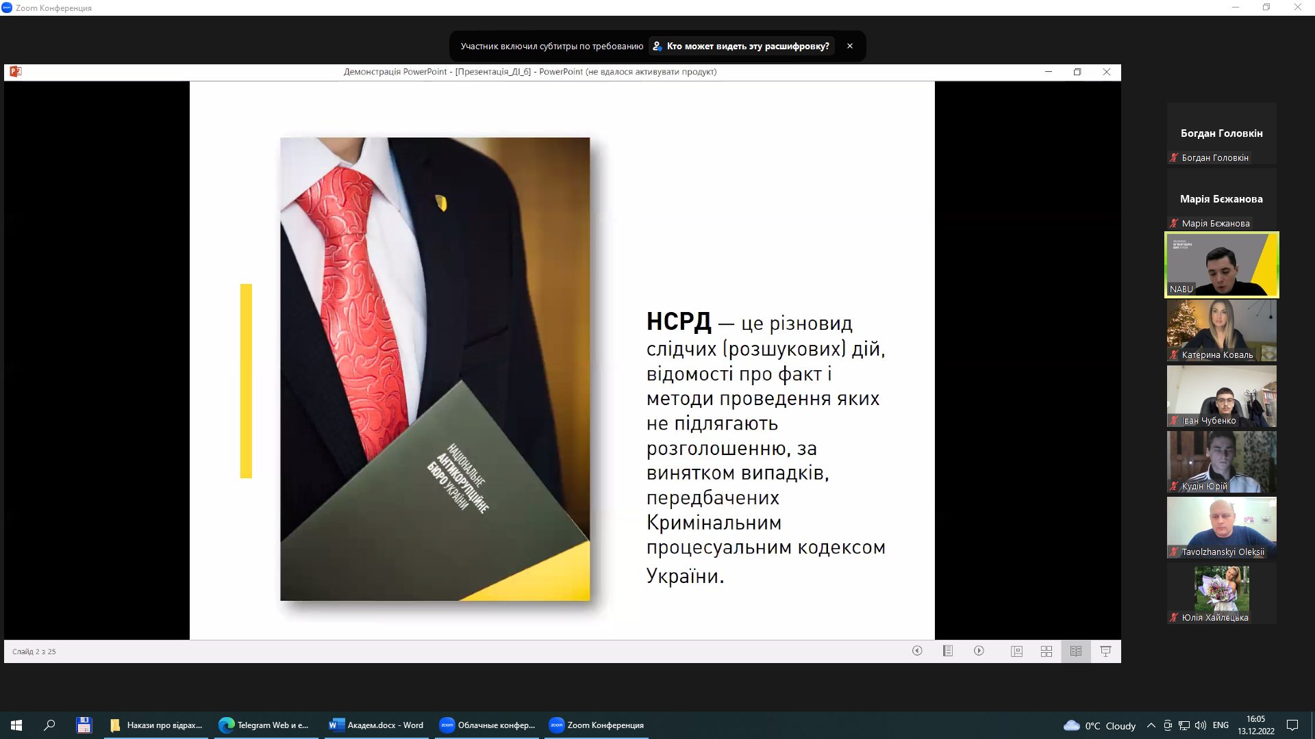 На Факультеті слідчої та детективної діяльності відбувся сьомий вебінар у межах спільного з НАБУ освітнього проєкту “Детективні студії”