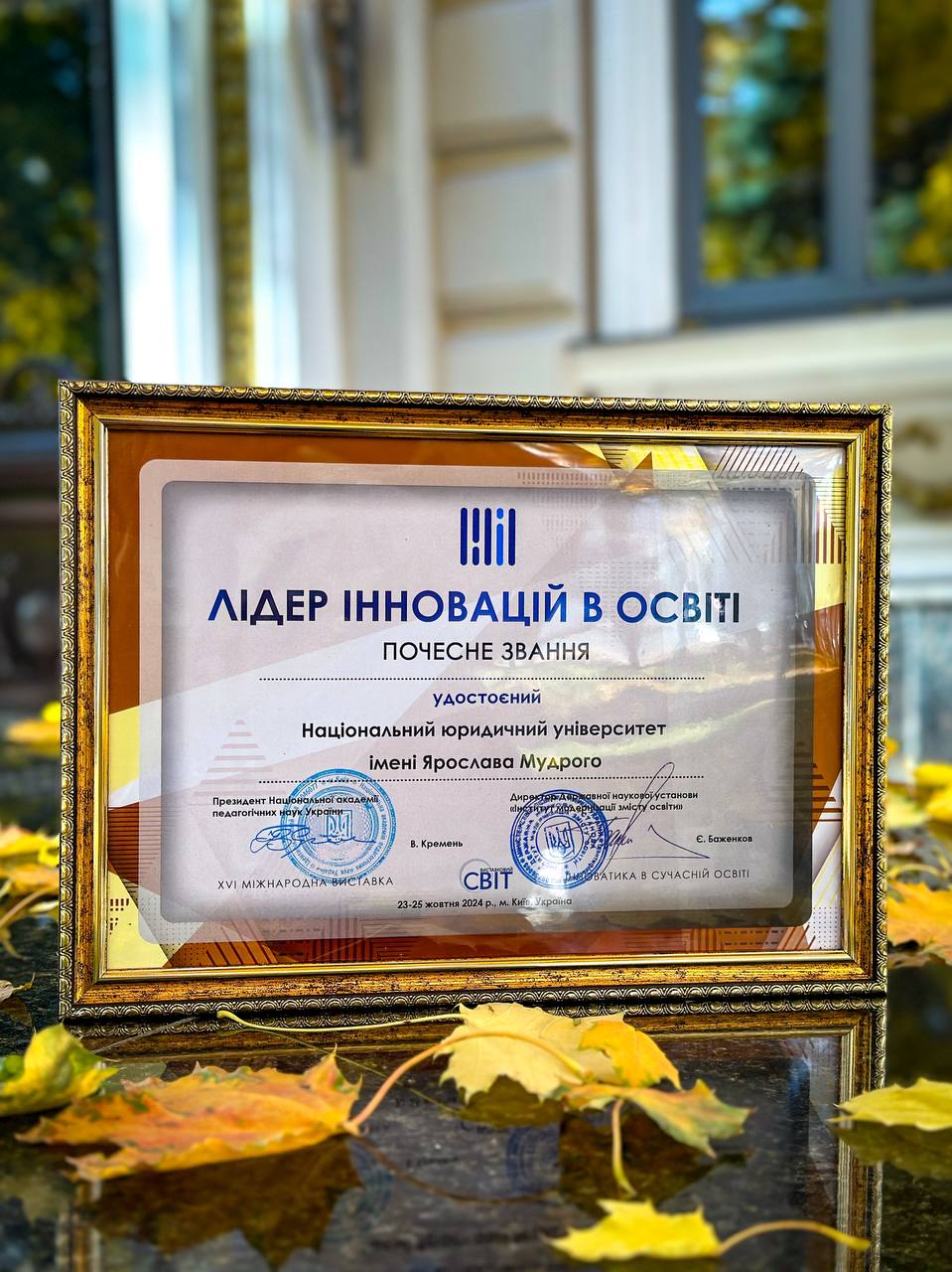 Перемога Національного юридичного університету імені Ярослава Мудрого у міжнародній виставці «Інноватика в сучасній освіті»: почесне звання «Лідер інновацій в освіті» та золота медаль.