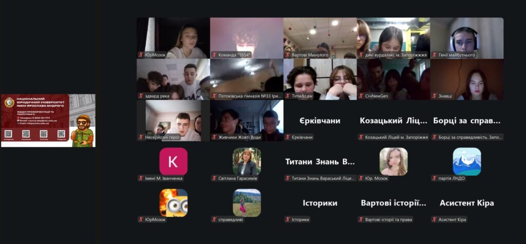 До Дня Національного юридичного університету імені Ярослава Мудрого Центр рекрутингу, маркетингу та комунікацій уже традиційно організував легендарну інтелектуальну гру «Що? Де? Коли?» для школярів. За багато років цей захід перетворився на впізнавану освітню традицію, що об’єднує допитливу молодь з усієї країни та створює простір для змагання, командної роботи і розвитку критичного мислення.