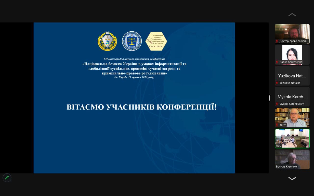 11 травня 2023 року в НЮУ імені Ярослава Мудрого відбулася VІІ міжнародна науково-практична конференція «Національна безпека України в умовах інформатизації та глобалізації суспільних процесів: сучасні загрози та кримінально-правове регулювання». Співорганізатори: НЮУ ім. Ярослава Мудрого, НДІ ВПЗ імені акад. В. В. Сташиса НАПрН України, ГО «Всеукраїнська асоціація кримінального права».