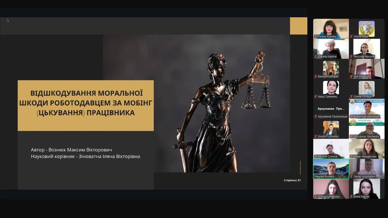 12 березня 2025 р. в Національному юридичному університеті імені Ярослава Мудрого відбулась підсумкова відеоконференції І туру Всеукраїнського конкурсу студентських наукових робіт зі спеціальності «Право» у 2024/2025 навчальному році серед студентів нашого Університету.