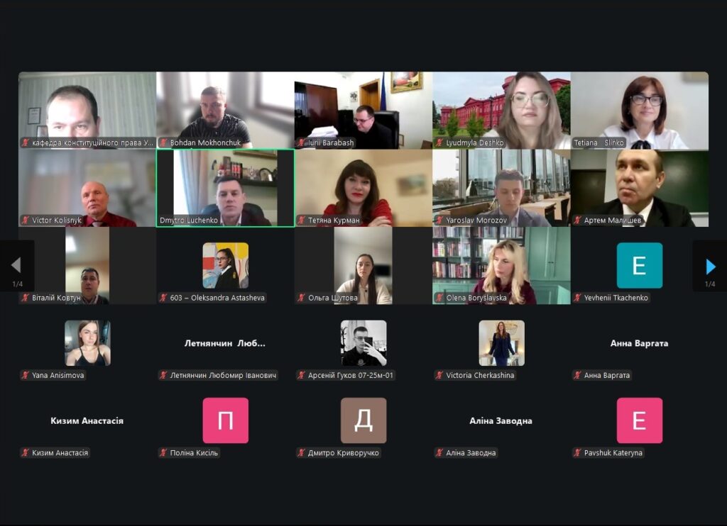 Спікерами заходу виступили судді Конституційного Суду України Юрій Барабаш і Віктор Кичун, суддя Конституційного Суду України у відставці Віктор Колісник, професор кафедри загальнотеоретичного правознавства та публічного права правничого факультету Національного університету «Києво-Могилянська академія», Голова Конституційного Суду України 2018-2019 рр. Станіслав Шевчук, завідувачка кафедри процесуального права ЧНУ імені Юрія Федьковича Щербанюк Оксана, завідувачка кафедри конституційного права ЛНУ імені Івана Франка Олена Бориславська, професор кафедри конституційного права КНУ імені Тараса Шевченка Людмила Дешко, доцент кафедри конституційного права України НЮУ імені Ярослава Мудрого Любомир Летнянчин, аспіранти кафедри конституційного права України НЮУ імені Ярослава Мудрого Олександра Асташева та Ярослав Морозов.