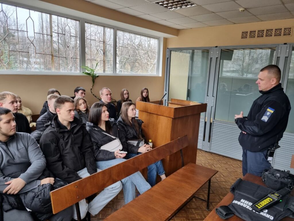 У межах заняття студенти відвідали конвойне приміщення, а також були присутні на низці судових засідань під головуванням голови суду Дениса Цвірюка. Зокрема, вони спостерігали за розглядом цивільної справи про розірвання шлюбу, адміністративної справи щодо оскарження постанови про притягнення до адміністративної відповідальності, а також кримінального провадження щодо продовження строку тримання під вартою у справі про кримінальне правопорушення, передбачене пунктом 13 частини 2 статті 115 Кримінального кодексу України.