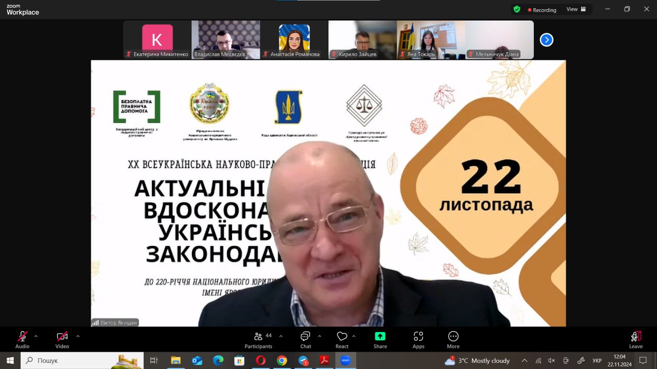 22 листопада на базі Юридичної клініки Національного юридичного університету імені Ярослава Мудрого була проведена ХX Всеукраїнська науково-практична конференція до 220-річчя Національного юридичного університету імені Ярослава Мудрого «Актуальні шляхи вдосконалення українського законодавства». Конференція була організована за підтримки наших надійних та незмінних партнерів, а саме: Координаційного центру з надання правничої допомоги, Ради адвокатів Харківської області, ГО «Центр розвитку правничої клінічної освіти»