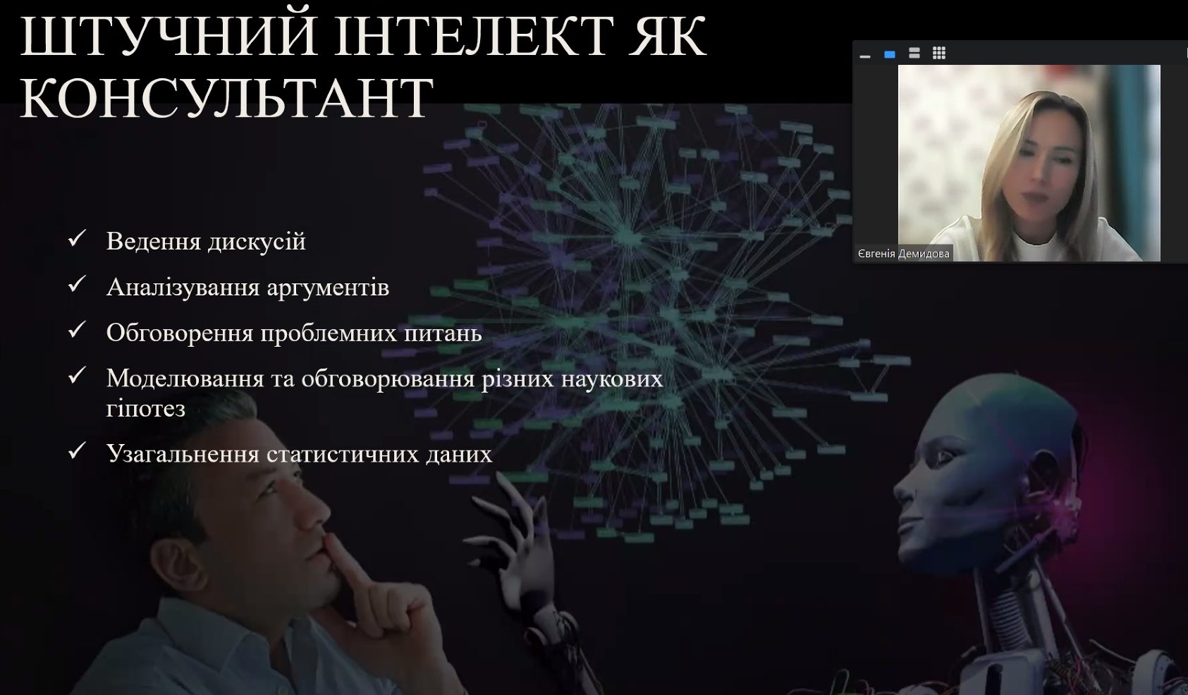 кандидат юридичних наук, доцент, доцент кафедри криміналістики Національного юридичного університету імені Ярослава Мудрого Євгенія Демидова.