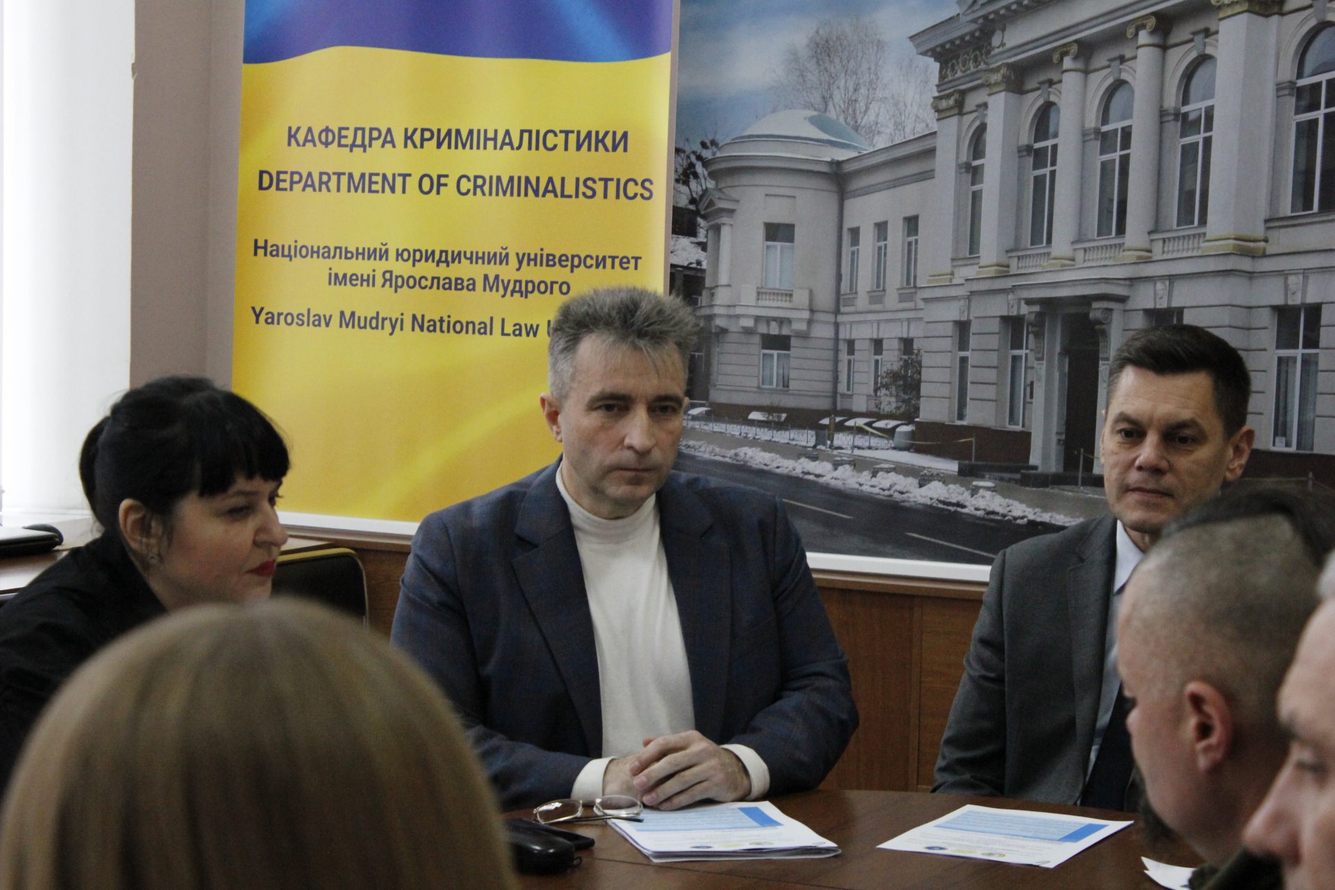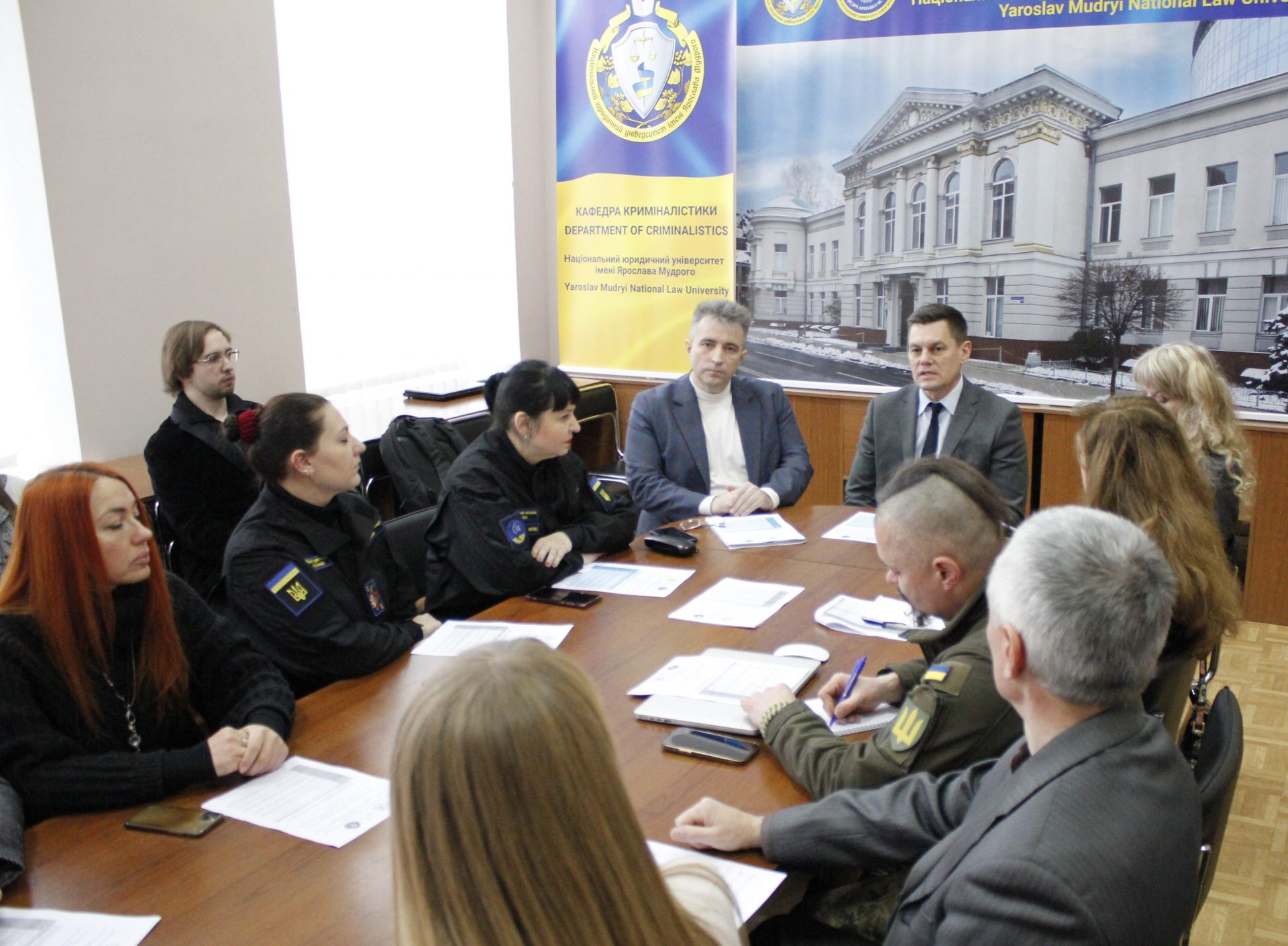 Модерував захід доктор юридичних наук, професор, в. о. завідувача кафедри криміналістики Національного юридичного університету імені Ярослава Мудрого Віктор Шевчук.