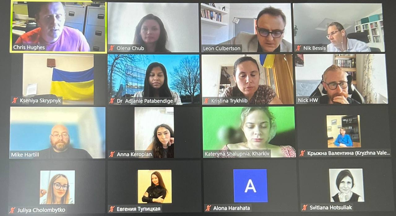 Протягом 7 днів з травня по липень 2023 р. Dr Leon Culbertson та Dr Chris Hughes з залученням інших фахівців провели серію вебінарів про Західні Методології Досліджень: • аспекти дизайну дослідження; • персоналізацію наукового розвитку; • огляд літератури – мету, процес і роль; • Smartnotes – практичні аспекти огляду літератури в деталях; • ключові концепції дизайну дослідження: постановку дослідницького питання; заявку на внесок у знання; ідентифікацію, оцінку та побудову аргументів; • відкрите дослідження, публікацію, формування профілю дослідника; • отримання фінансування досліджень.