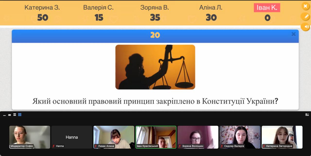 В даному зіткненні ми перевірили їхні знання з предметів, які будуть на НМТ, та з основ правознавства.