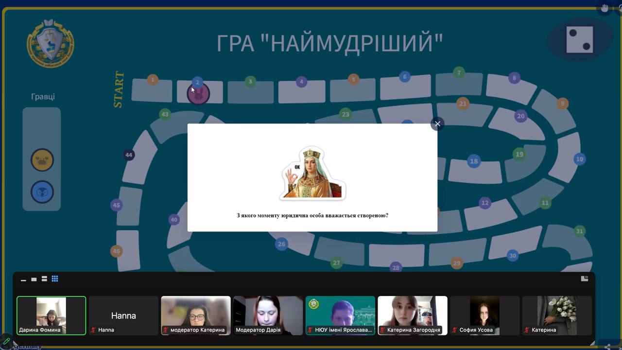 Сьогодні Національний юридичний університет імені Ярослава Мудрого за підтримки Асоціації Випускників Університету провів приголомшливу онлайн гру «Наймудріший», у якій взяло участь понад 120 абітурієнтів зі всіх куточків України