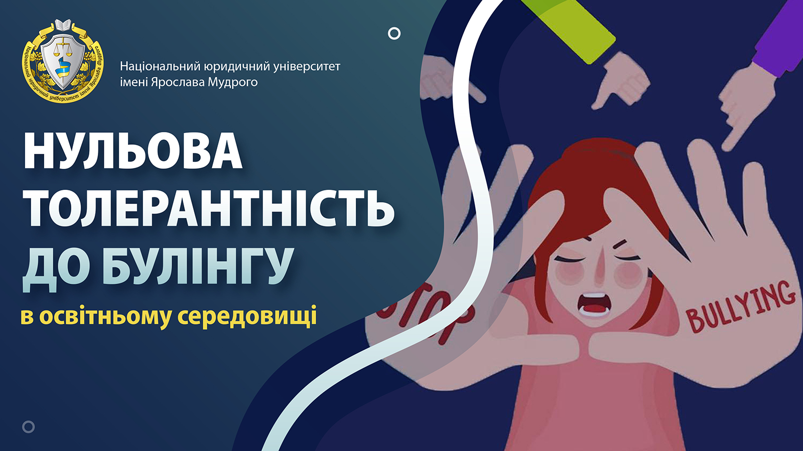 Національний юридичний університет імені Ярослава Мудрого підкреслює свою непохитну позицію щодо булінгу — “Нульова толерантність до булінгу в освітньому середовищі!” Це явище, яке руйнує довіру, підриває психологічне здоров’я і створює токсичне середовище. Булінгу не місце в нашому колективі та освітньому середовищі.