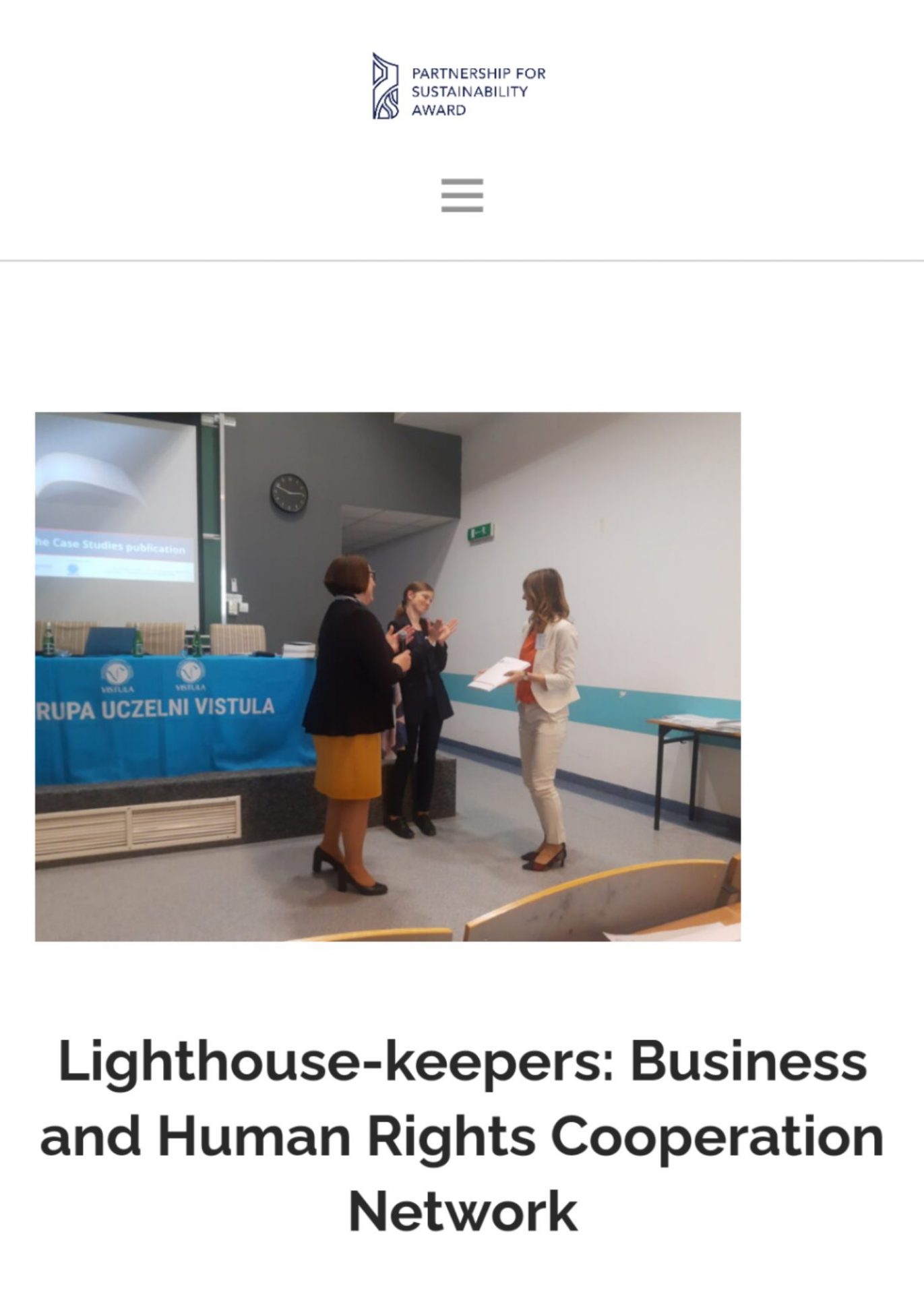 Спільний проект Національного юридичного університету імені Ярослава Мудрого і Польського інституту прав людини і бізнесу “Lighthouse-keepers: Business and Human Rights Cooperation Network”, який було реалізовано разом із партнерами з Ісландії (ALDA Association, the Icelandic Ombudsman for Children), став фіналістом конкурсу “Партнерство заради сталого розвитку”. Цей міжнародний конкурс проектів проводить Глобальний договір ООН в Україні. Національний юридичний університет імені Ярослава Мудрого є членом Глобального договору.