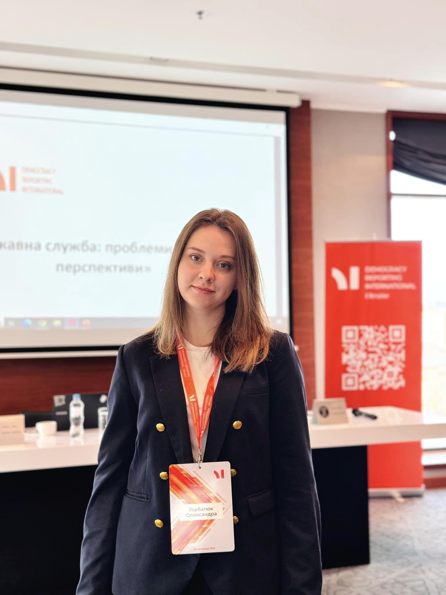 Олександра Горбатюк, студентка групи 03-24м-02, стала стажеркою Національного агентства з питань запобігання корупції у рамках проєкту «Демократична інтеграція, стійкість та залучення» (Ukraine DARE), який втілює Democracy reporting international (DRI – Ukraine) за підтримки Федерального Міністерства закордонних справ Німеччини. Проєкт має на меті сприяти наближення законодавства до норм Європейського Союзу, розбудувати діалог щодо викликів для демократії в Україні під час війни та сприяти громадянській активності молоді.
